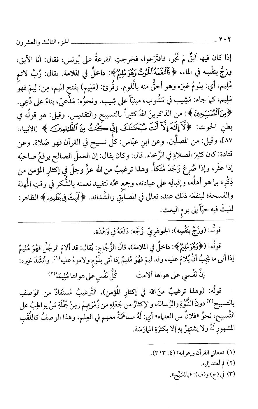 قوله: (وهذا ترغيب من الله في إكثار المؤمن)، الترغيب مستفاد من الوصف بالتسبيح دون النبوة والرسالة، والإكثار من جعله من زمرتهم ومن جملة مت يواظب على التسبيح، نحو "فلان من العلماء" أي: له مساهمة معهم في العلم، وهذا الوصف كاللقب المشهور له ولا يشتهر به إلا بكثرة الممارسة.