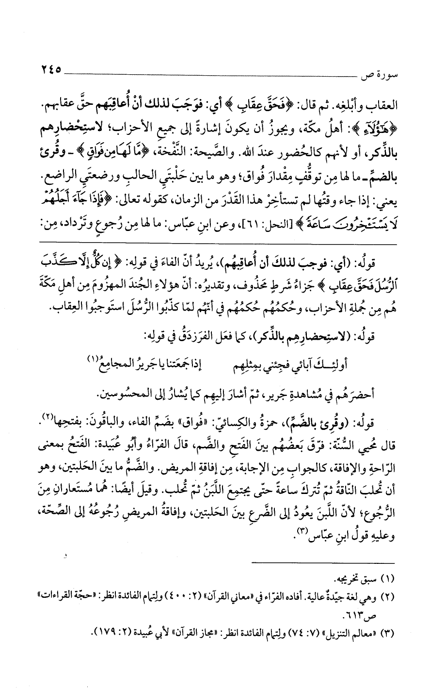 قوله: (وقرئ بالضم)، حمزة والكسائي: "فواق" بضم الفاء، والباقون: بفتحها.