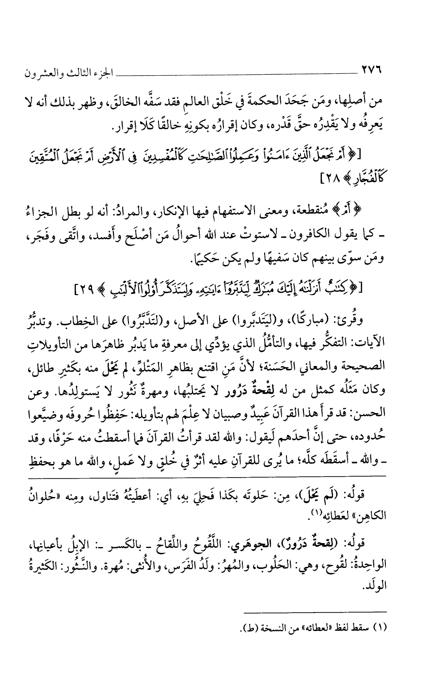 [{أَمْ نَجْعَلُ الَّذِينَ آمَنُوا وعَمِلُوا الصَّالِحَاتِ كَالْمُفْسِدِينَ فِي الأَرْضِ أَمْ نَجْعَلُ المُتَّقِينَ كَالْفُجَّارِ} 28]