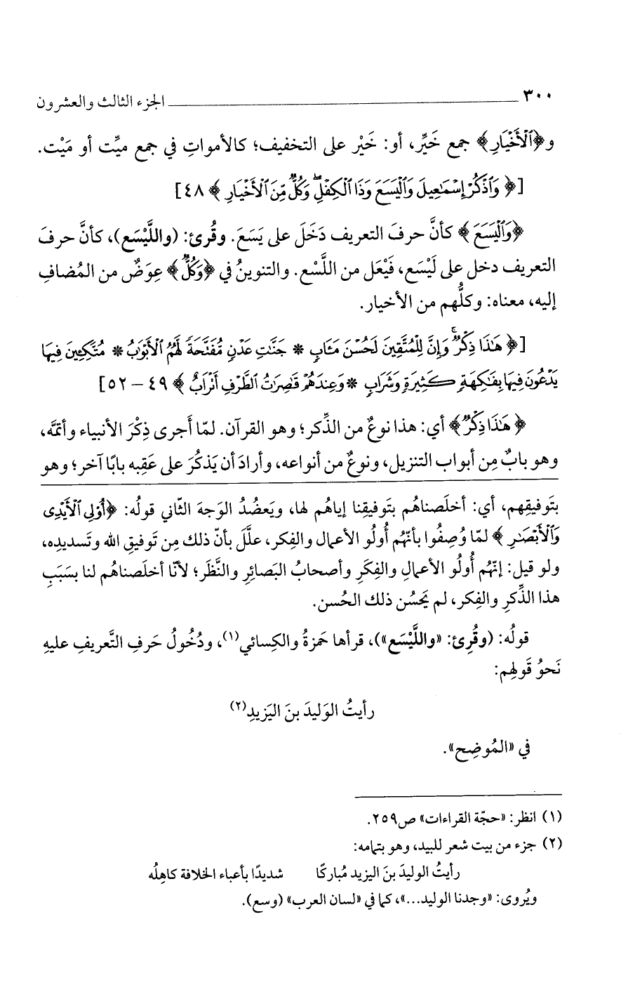 {والْيَسَعَ} كأن حرف التعريف دخل على يسع. وقرئ: (والليسع)، كأن حرف التعريف