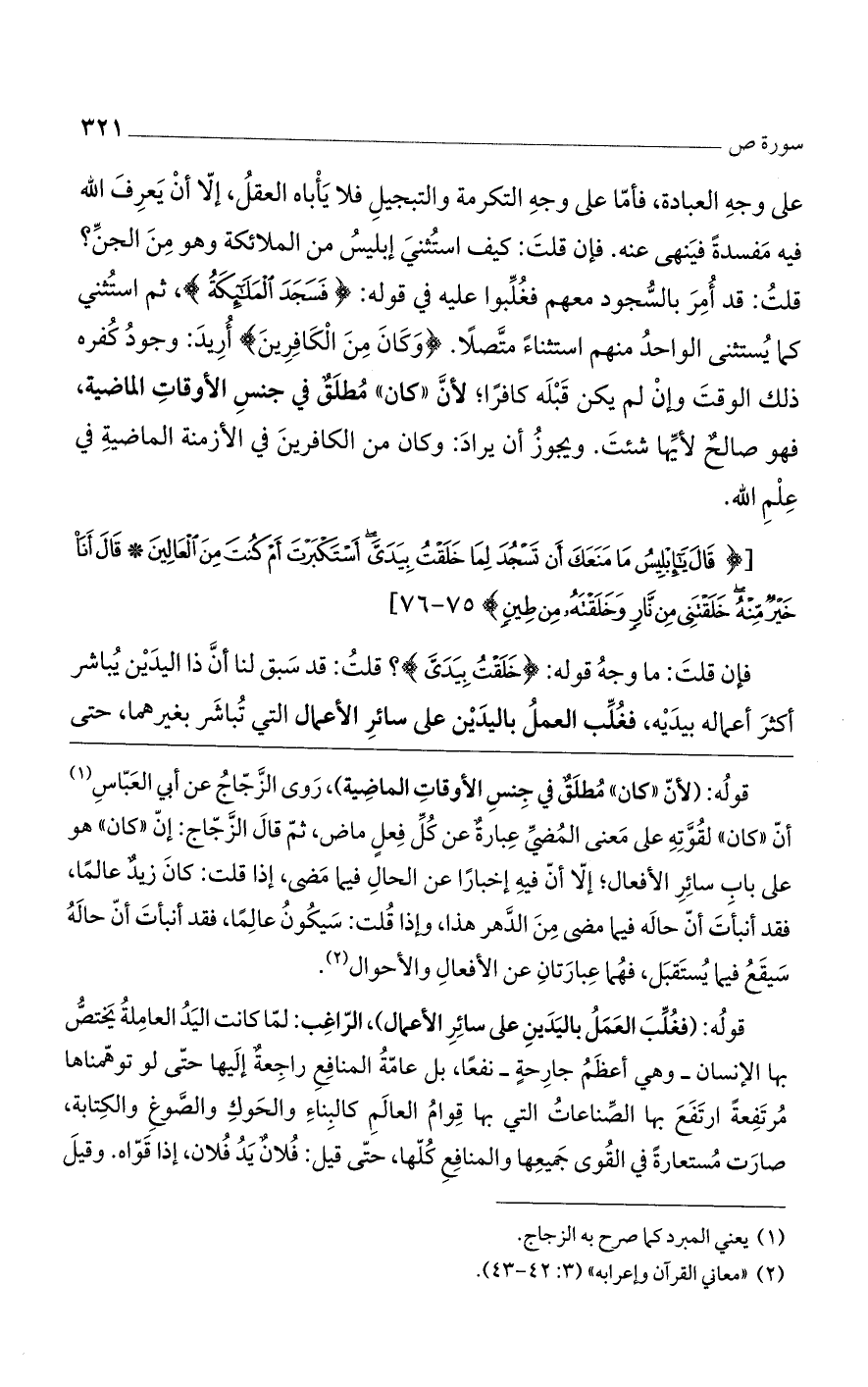 [{قَالَ يَا إبْلِيسُ مَا مَنَعَكَ أَن تَسْجُدَ لِمَا خَلَقْتُ بِيَدَيَّ أَسْتَكْبَرْتَ أَمْ كُنتَ مِنَ العَالِينَ * قَالَ أَنَا خَيْرٌ مِّنْهُ خَلَقْتَنِي مِن نَّارٍ وخَلَقْتَهُ مِن طِينٍ} 75 - 76]