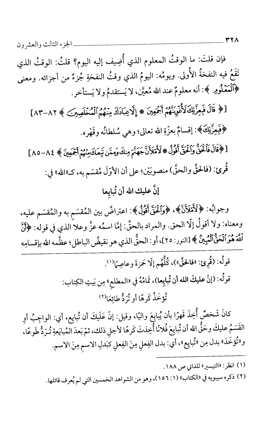 قرئ: (فالحق والحق) منصوبين؛ على أن الأول مقسم به، ك"الله" في: