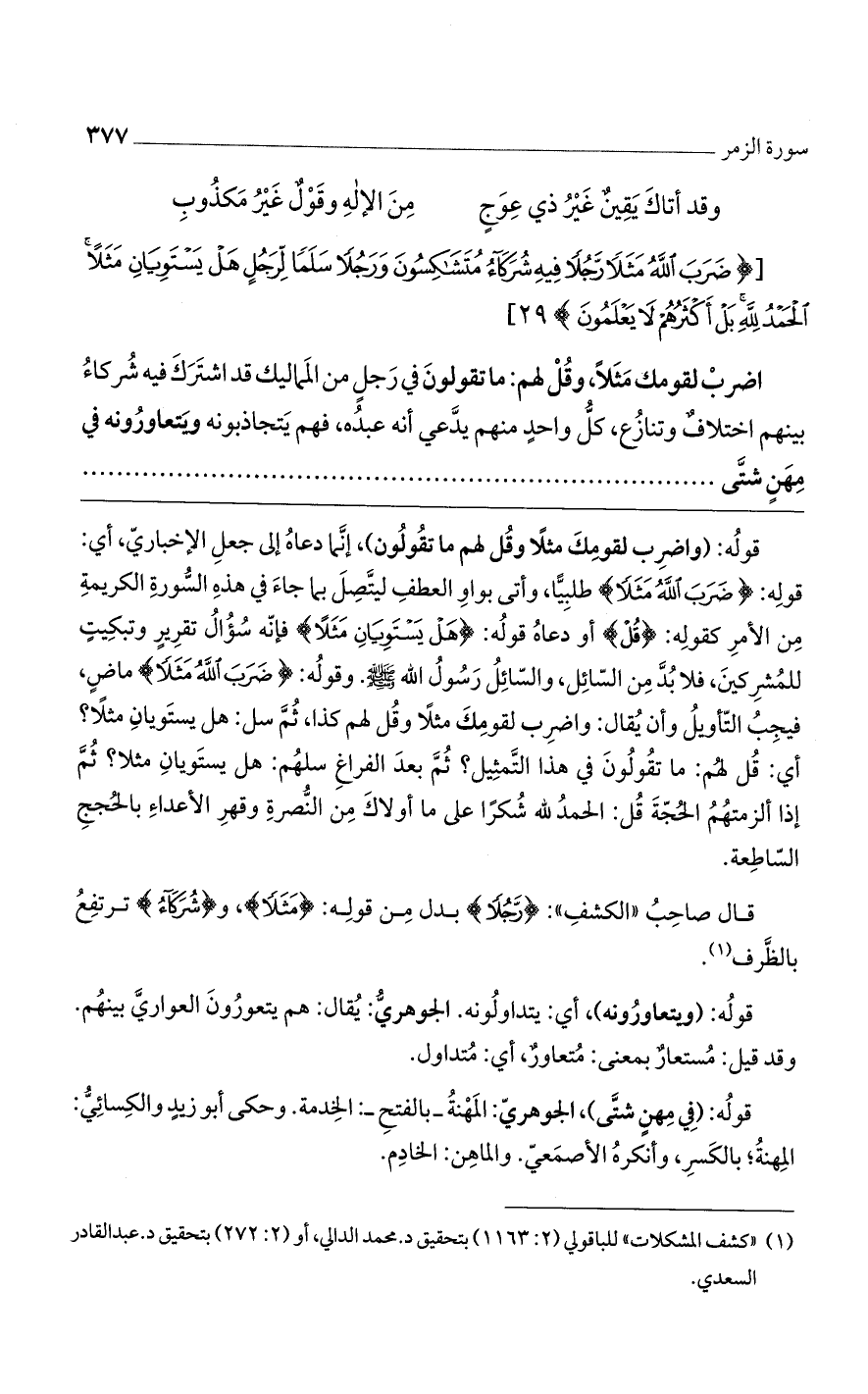 [{ضَرَبَ اللَّهُ مَثَلًا رَجُلًا فِيهِ شُرَكاءُ مُتَشاكِسُونَ وَرَجُلًا سَلَمًا لِرَجُلٍ هَلْ يَسْتَوِيانِ مَثَلًا الْحَمْدُ لِلَّهِ بَلْ أَكْثَرُهُمْ لا يَعْلَمُونَ} 29]