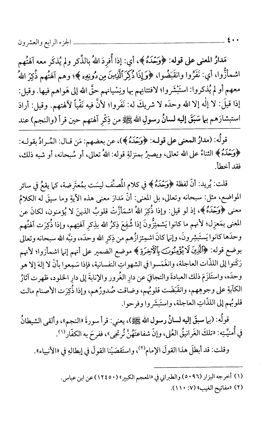 قوله: (مدار المعنى على قوله: {وَحْدَهُ})، عن بعضهم: من قال: المراد بقوله: {وَحْدَهُ} الثناء على الله تعالى، ويصير بمنزله قوله: الله تعالى، أو سبحانه، أو شبه ذلك، فقد أخطأ.
