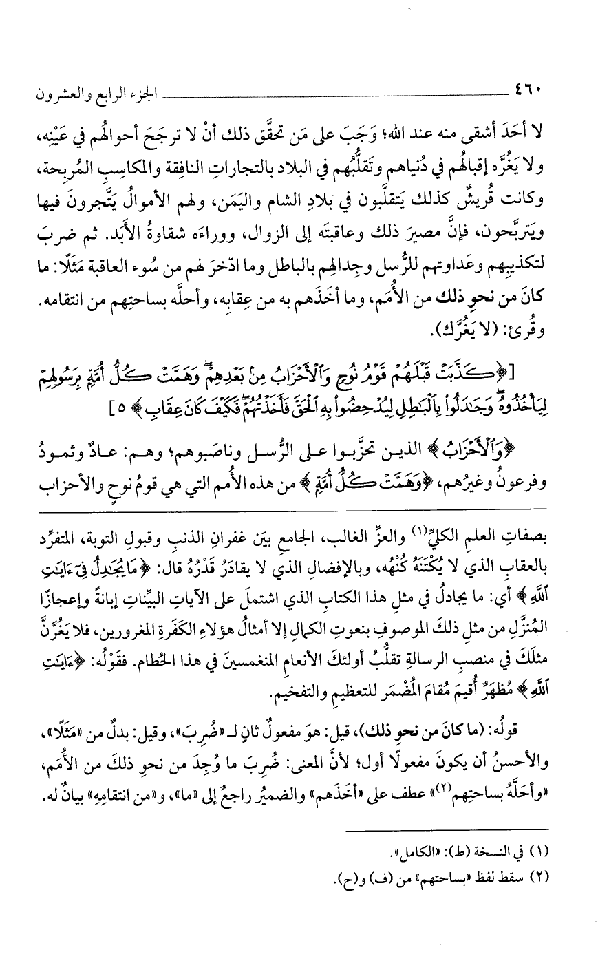 [{كَذَّبَتْ قَبْلَهُمْ قَوْمُ نُوحٍ والأَحْزَابُ مِنْ بَعْدِهِمْ وهَمَّتْ كُلُّ أُمَّةٍ بِرَسُولِهِمْ لِيَاخُذُوهُ وجَادَلُوا بِالْبَاطِلِ لِيُدْحِضُوا بِهِ الحَقَّ فَأَخَذْتُهُمْ فَكَيْفَ كَانَ عِقَابِ} 5]