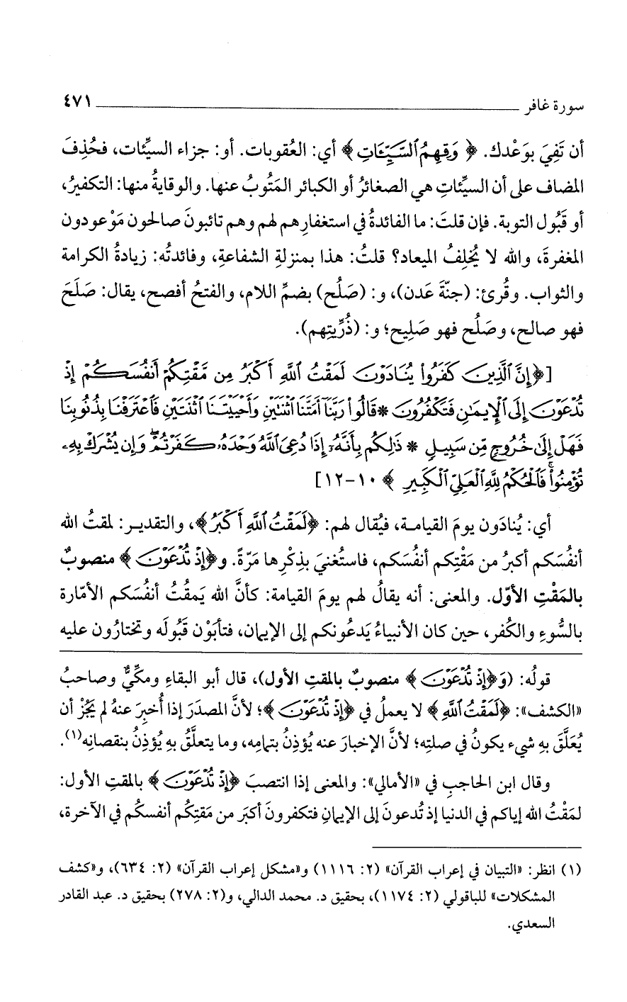 وقال ابن الحاجب في"الأمالي": والمعنى إذا انتصب {إذْ تُدْعَوْنَ} بالمقت الأول: لمقت الله إياكم في الدنيا إذ تدعون إلى الإيمان فتكفرون أكبر من مقتكم أنفسكم في الآخرة،