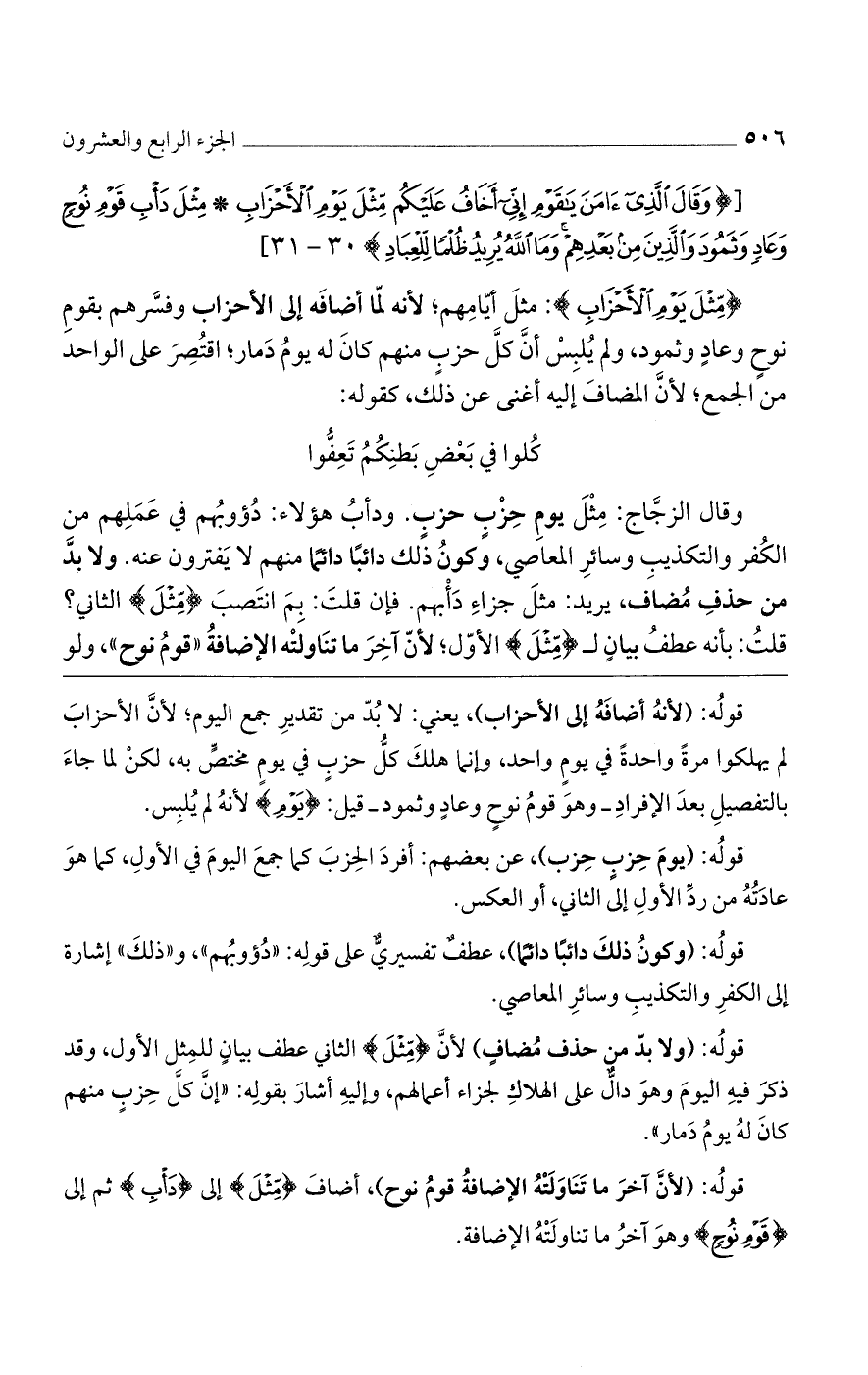 [{وقَالَ الَّذِي آمَنَ يَا قَوْمِ إنِّي أَخَافُ عَلَيْكُم مِّثْلَ يَوْمِ الأَحْزَابِ * مِثْلَ دَابِ قَوْمِ نُوحٍ وعَادٍ وثَمُودَ والَّذِينَ مِنْ بَعْدِهِمْ ومَا اللَّهُ يُرِيدُ ظُلْمًا لِّلْعِبَادِ} 30 - 31]