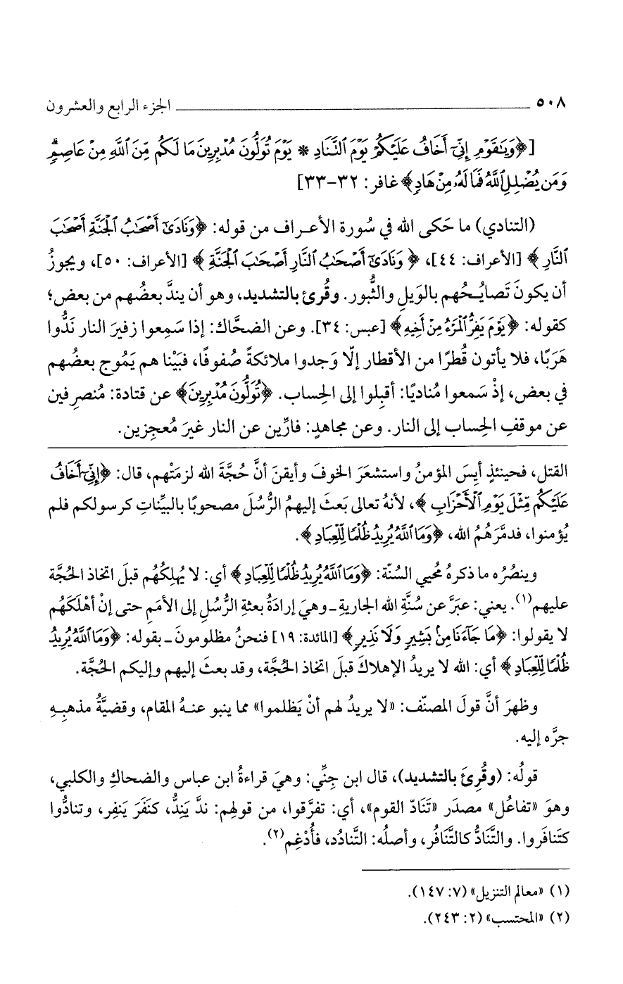 [{ويَا قَوْمِ إنِّي أَخَافُ عَلَيْكُمْ يَوْمَ التَّنَادِ (32) يَوْمَ تُوَلُّونَ مُدْبِرِينَ مَا لَكُم مِّنَ اللَّهِ مِنْ عَاصِمٍ ومَن يُضْلِلِ اللَّهُ فَمَا لَهُ مِنْ هَادٍ} غافر: 32 - 33]