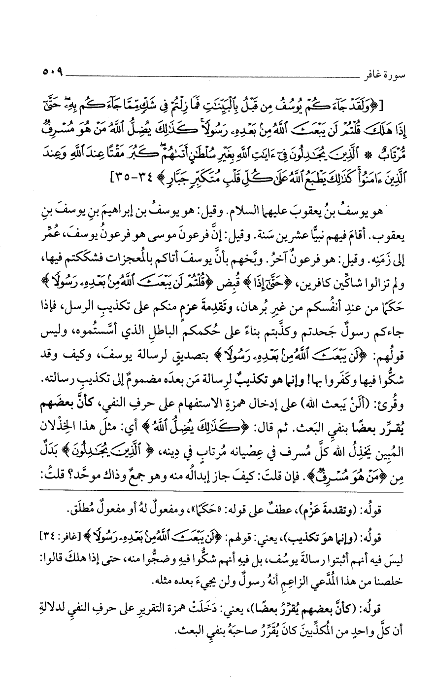 [{ولَقَدْ جَاءَكُمْ يُوسُفُ مِن قَبْلُ بِالْبَيِّنَاتِ فَمَا زِلْتُمْ فِي شَكٍّ مِّمَّا جَاءَكُم بِهِ حَتَّى إذَا هَلَكَ قُلْتُمْ لَن يَبْعَثَ اللَّهُ مِنْ بَعْدِهِ رَسُولًا كَذَلِكَ يُضِلُّ اللَّهُ مَنْ هُوَ مُسْرِفٌ مُّرْتَابٌ (34) الَّذِينَ يُجَادِلُونَ فِي آيَاتِ اللَّهِ بِغَيْرِ سُلْطَانٍ أَتَاهُمْ كَبُرَ مَقْتًا عِندَ اللَّهِ وعِندَ الَّذِينَ آمَنُوا كَذَلِكَ يَطْبَعُ اللَّهُ عَلَى كُلِّ قَلْبِ مُتَكَبِّرٍ جَبَّارٍ} 34 - 35]