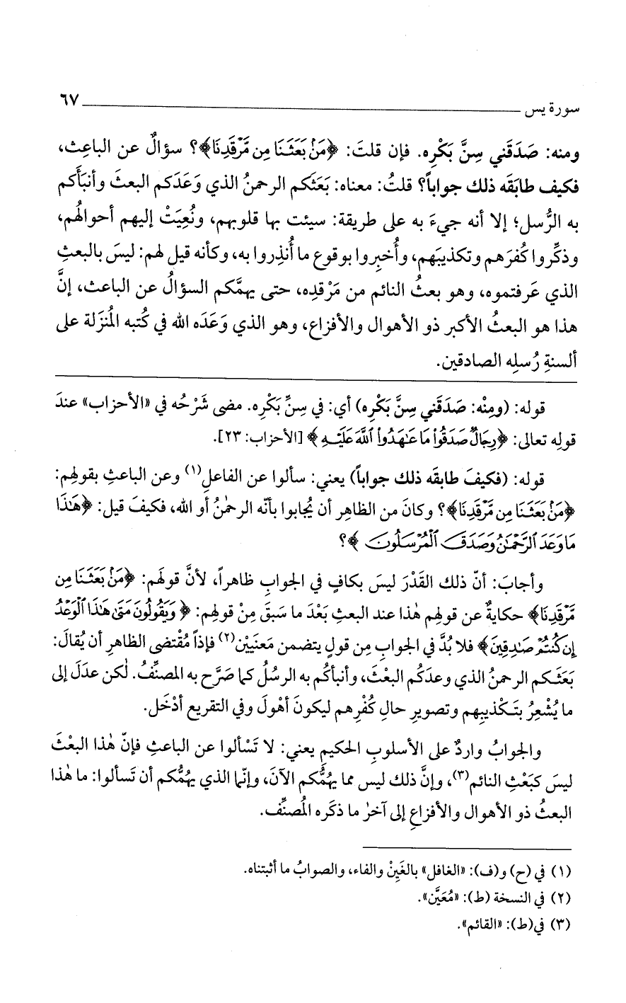 والجواب وارد على الأسلوب الحكيم يعني: لا تسألوا عن الباعث فإن هذا البعث ليس كبعث النائم، وإن ذلك ليس مما يهمكم الآن، وإنما الذي يهمكم أن تسألوا: ما هذا البعث ذو الأهوال والأفزاع إلى آخر ما ذكره المصنف.