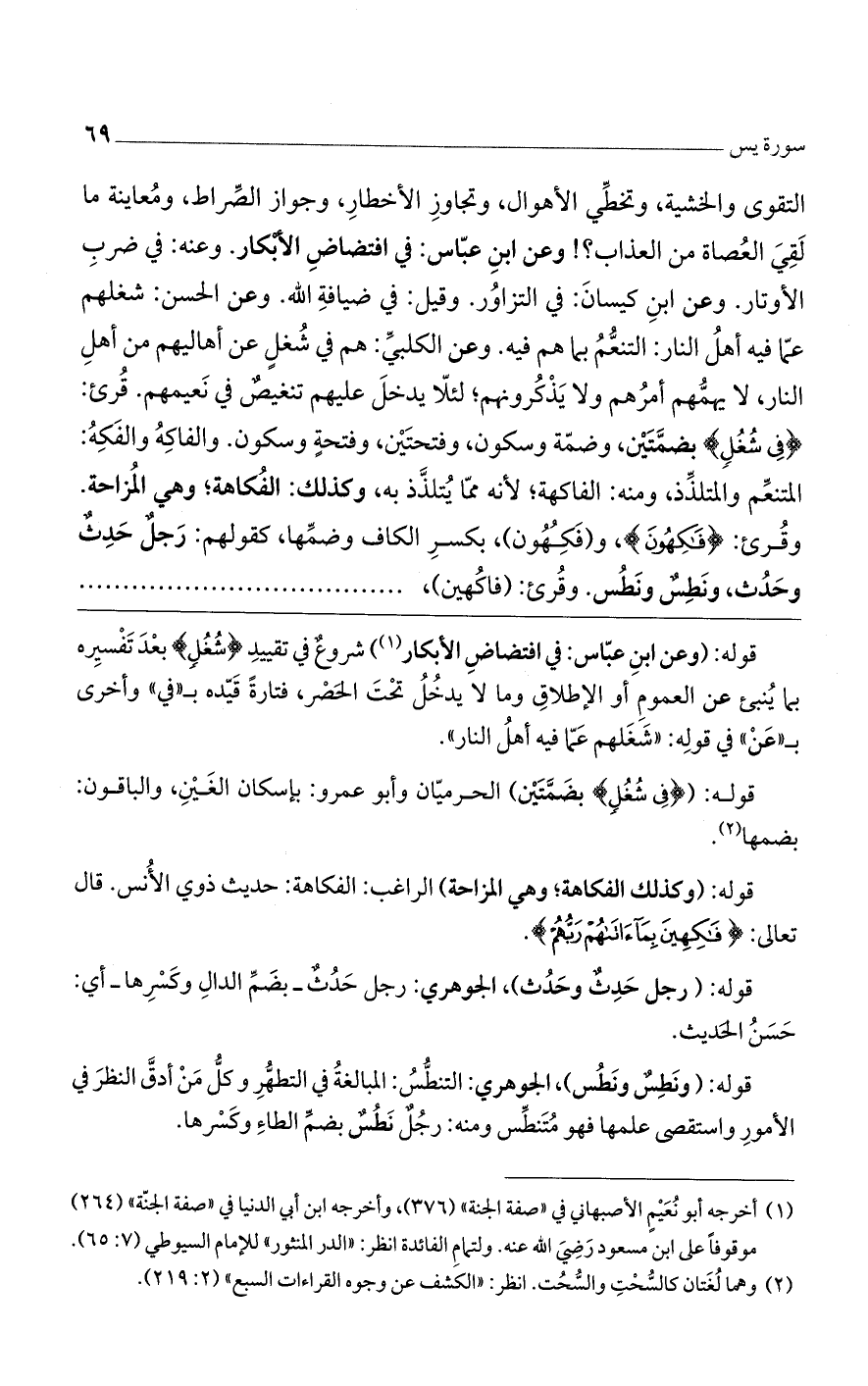 قوله: ({في شُغُلٍ} بضمتين) الحرميان وأبو عمرو: بإسكان الغين، والباقون: بضمها.