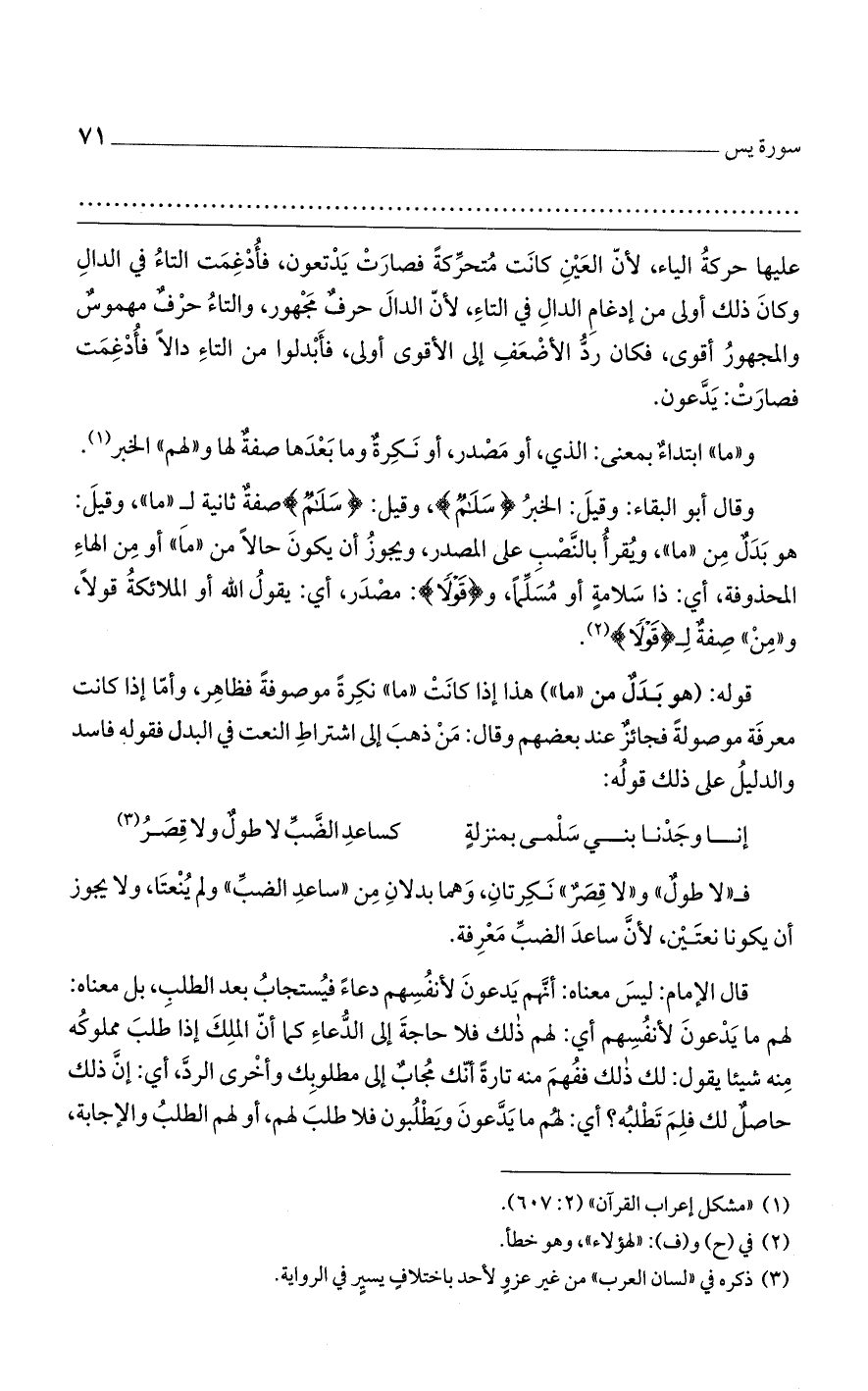 عليها حركة الياء، لأن العين كانت متحركة فصارت يدتعون، فأدغمت التاء في الدال وكان ذلك أولى من إدغام الدال في التاء، لأن الدال حرف مجهور، والتاء حرف مهموس والمجهور أقوى، فكان رد الأضعف إلى الأقوى أولى، فأبدلوا من التاء دالًا فأدغمت فصارت: يدعون.