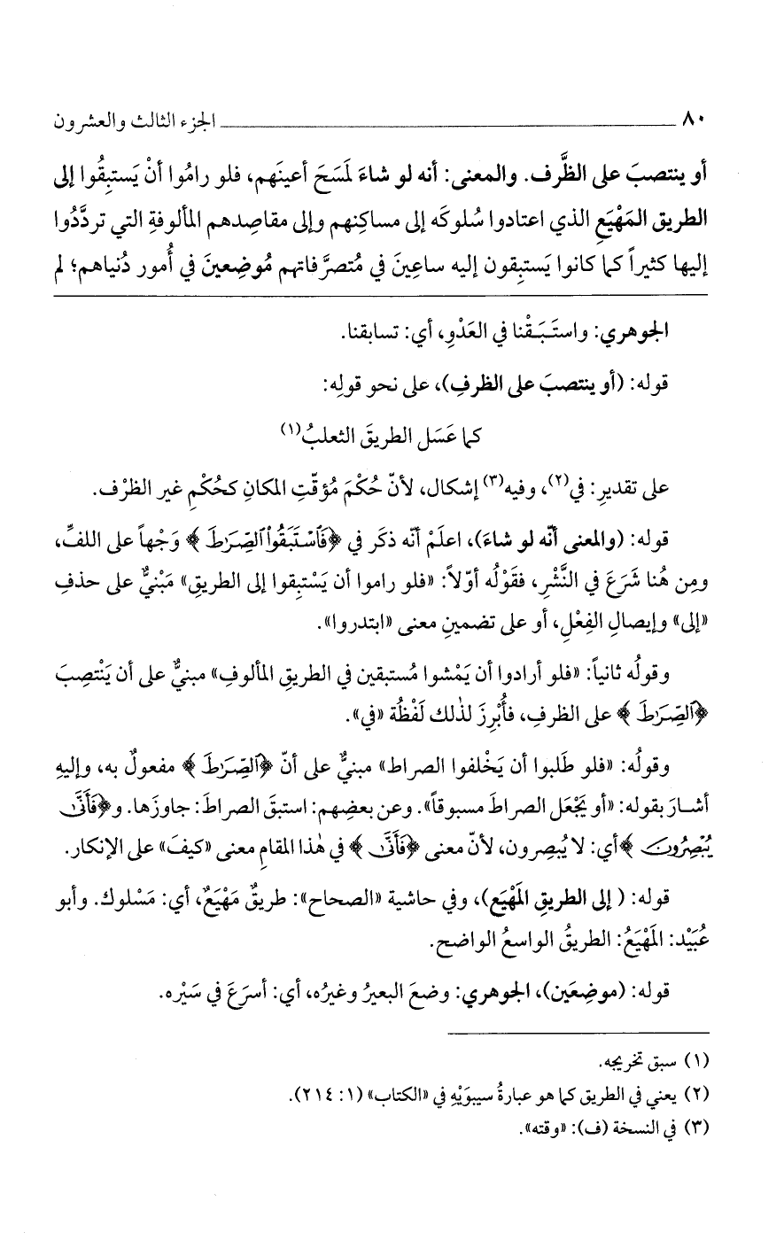 وقوله ثانيًا: "فلو أرادوا أن يمشوا مستبقين في الطريق المألوف" مبني على أن ينتصب {الصِّرَاطَ} على الظرف، فأبرز لذلك لفظة "في".