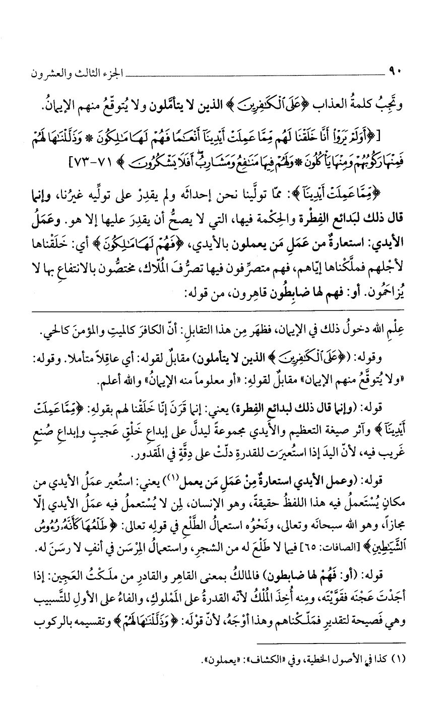[{أَوَ لَمْ يَرَوْا أَنَّا خَلَقْنَا لَهُم مِّمَّا عَمِلَتْ أَيْدِينَا أَنْعَامًا فَهُمْ لَهَا مَالِكُونَ * وذَلَّلْنَاهَا لَهُمْ فَمِنْهَا رَكُوبُهُمْ ومِنْهَا يَاكُلُونَ * ولَهُمْ فِيهَا مَنَافِعُ ومَشَارِبُ أَفَلا يَشْكُرُونَ} 71 - 73]