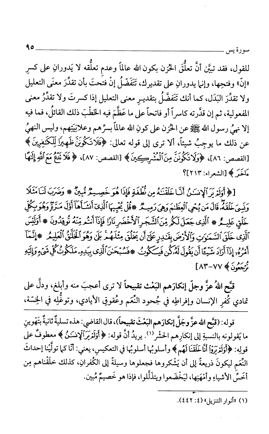 [{أَوَ لَمْ يَرَ الإنسَانُ أَنَّا خَلَقْنَاهُ مِن نُّطْفَةٍ فَإذَا هُوَ خَصِيمٌ مُّبِينٌ * وضَرَبَ لَنَا مَثَلًا ونَسِيَ خَلْقَهُ قَالَ مَن يُحْيِي العِظَامَ وهِيَ رَمِيمٌ * قُلْ يُحْيِيهَا الَّذِي أَنشَأَهَا أَوَّلَ مَرَّةٍ وهُوَ بِكُلِّ خَلْقٍ عَلِيمٌ * الَّذِي جَعَلَ لَكُم مِّنَ الشَّجَرِ الأَخْضَرِ نَارًا فَإذَا أَنتُم مِّنْهُ تُوقِدُونَ * أَوَلَيْسَ الَّذِي خَلَقَ السَّمَوَاتِ والأَرْضَ بِقَادِرٍ عَلَى أَن يَخْلُقَ مِثْلَهُم بَلَى وهُوَ الخَلاَّقُ العَلِيمُ * إنَّمَا أَمْرُهُ إذَا أَرَادَ شَيْئًا أَن يَقُولَ لَهُ كُن فَيَكُونُ * فَسُبْحَانَ الَّذِي بِيَدِهِ مَلَكُوتُ كُلِّ شَيْءٍ وإلَيْهِ تُرْجَعُونَ} 77 - 83]