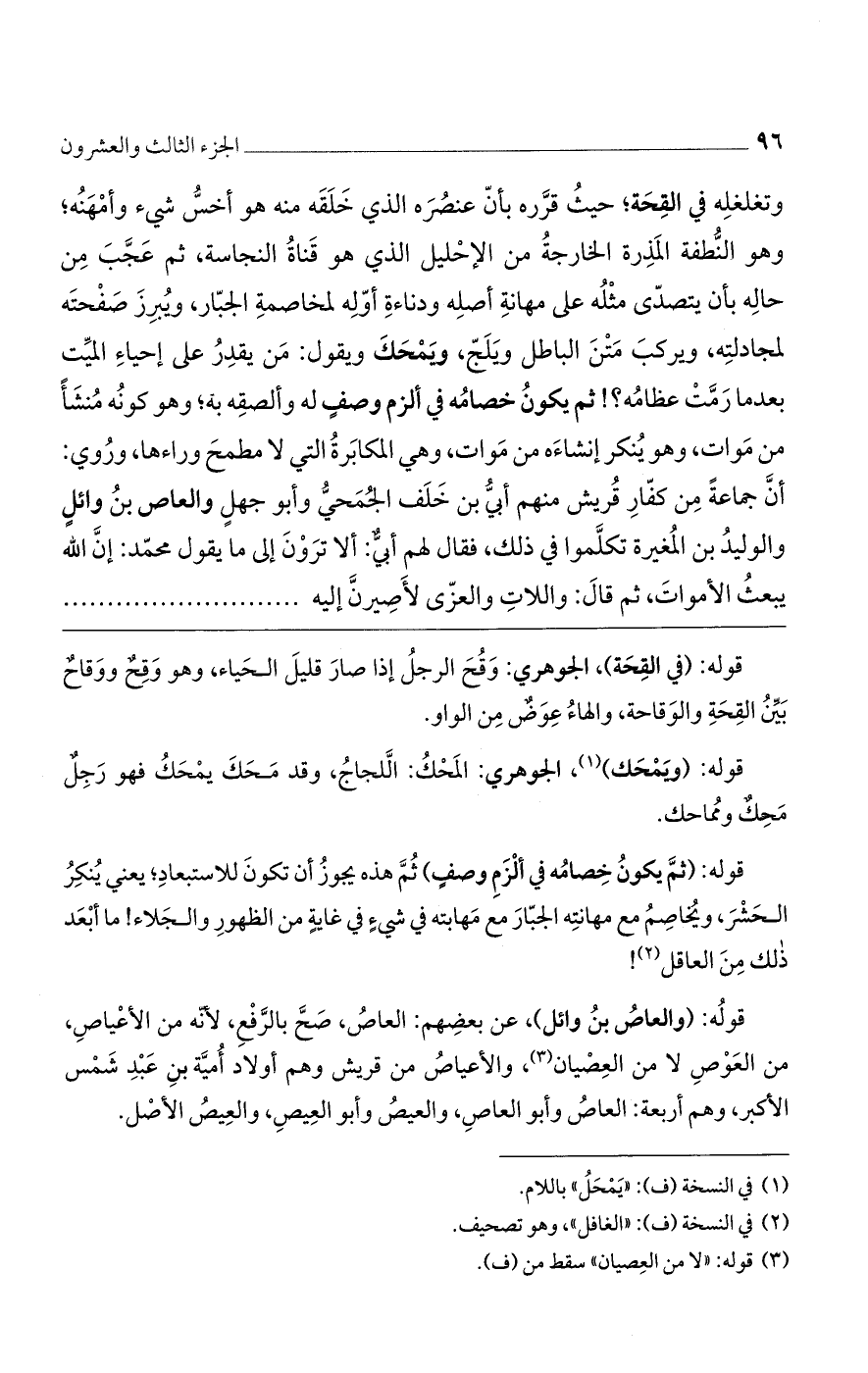 قوله: (ثم يكون خصامه في ألزم وصف) ثم هذه يجوز أن تكون للاستعباد؛ يعني ينكر الحشر، ويخاصم مع مهانته الجبار مع مهابته في شيء في غاية من الظهور والجلاء! ما أبعد ذلك من العاقل!