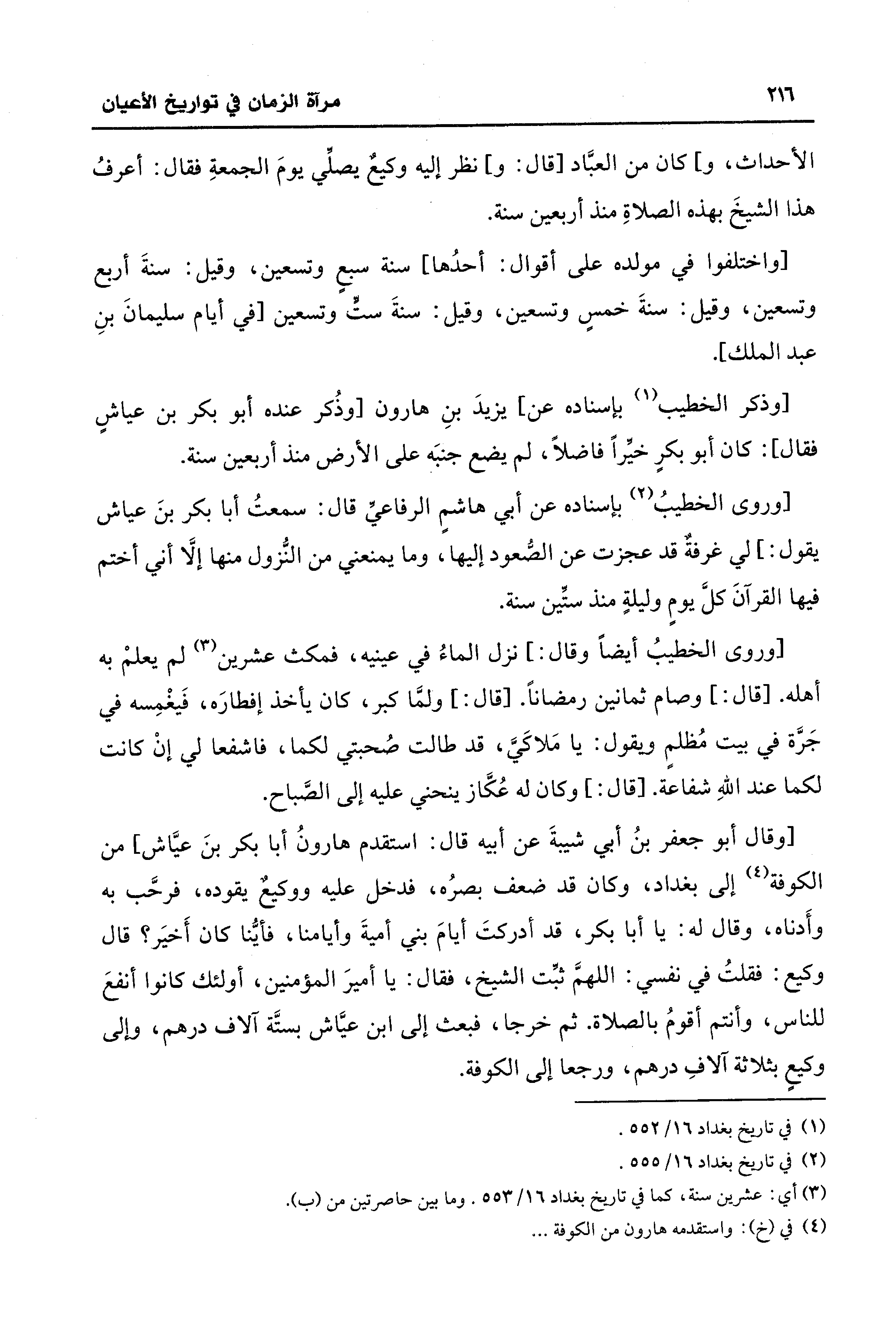 الأحداث، و] كان من العبَّاد [قال: و] نظر إليه وكيعٌ يصلِّي يومَ الجمعةِ فقال: أعرفُ هذا الشيخَ بهذه الصلاةِ منذ أربعين سنة.