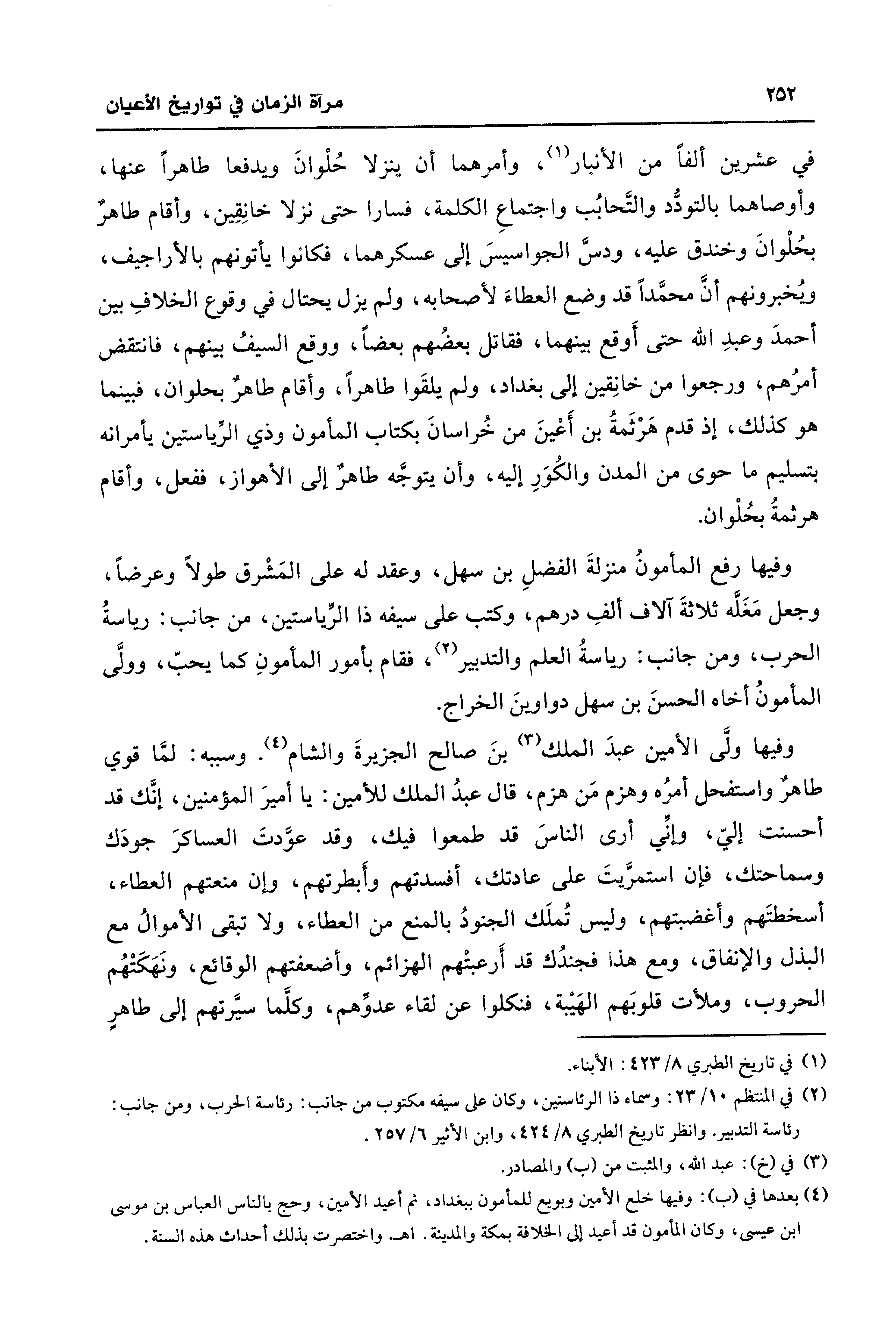(¬2) في المنتظم 10/ 23: وسماه ذا الرئاستين، وكان على سيفه مكتوب من جانب: رئاسة الحرب، ومن جانب: رئاسة التدبير. وانظر تاريخ الطبري 8/ 424، وابن الأثير 6/ 257.