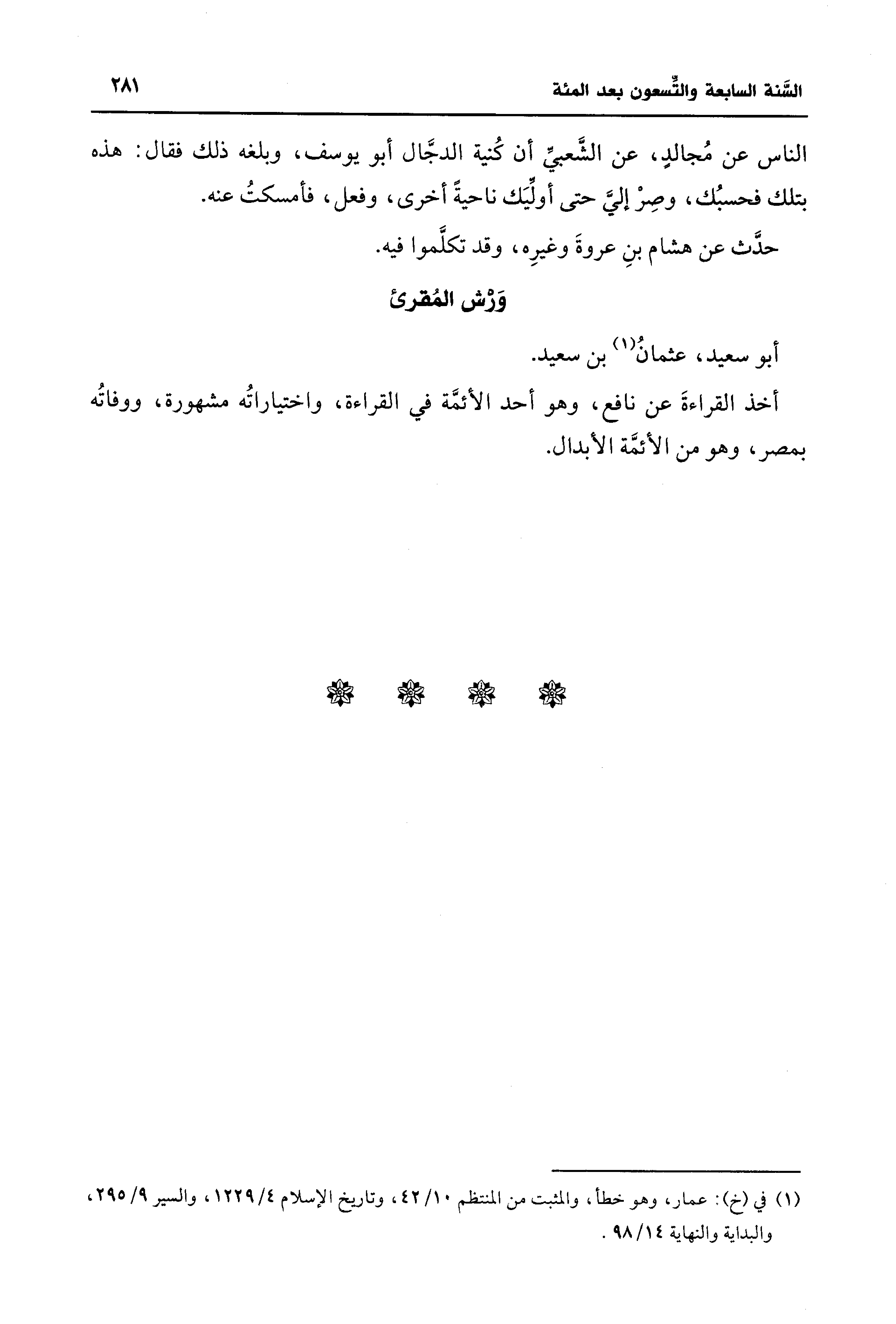 (¬1) في (خ): عمار، وهو خطأ، والمثبت من المنتظم 10/ 42، وتاريخ الإِسلام 4/ 1229، والسير 9/ 295، والبداية والنهاية 14/ 98.