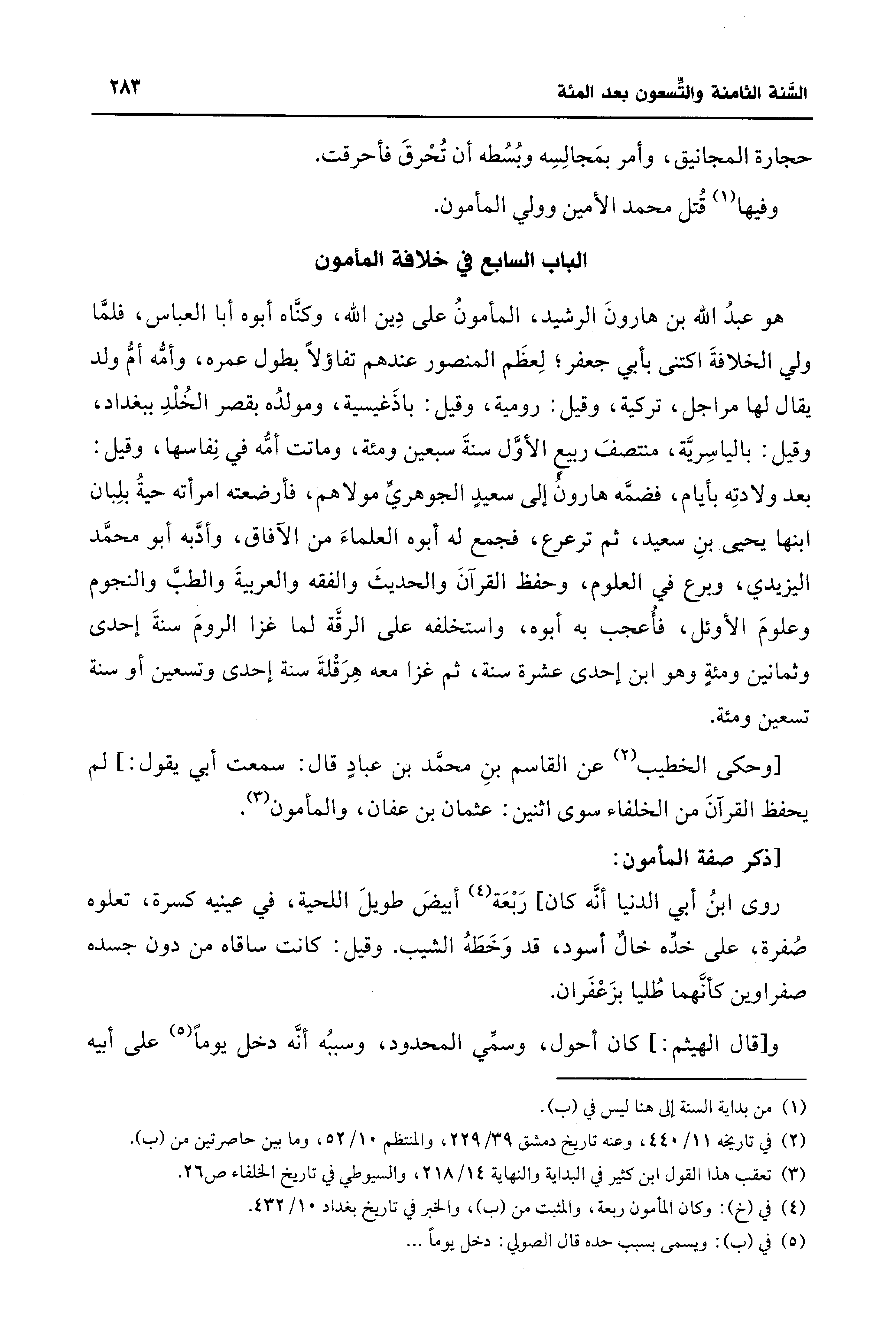(¬3) تعقب هذا القول ابن كثير في البداية والنهاية 14/ 218، والسيوطي في تاريخ الخلفاء ص 26.