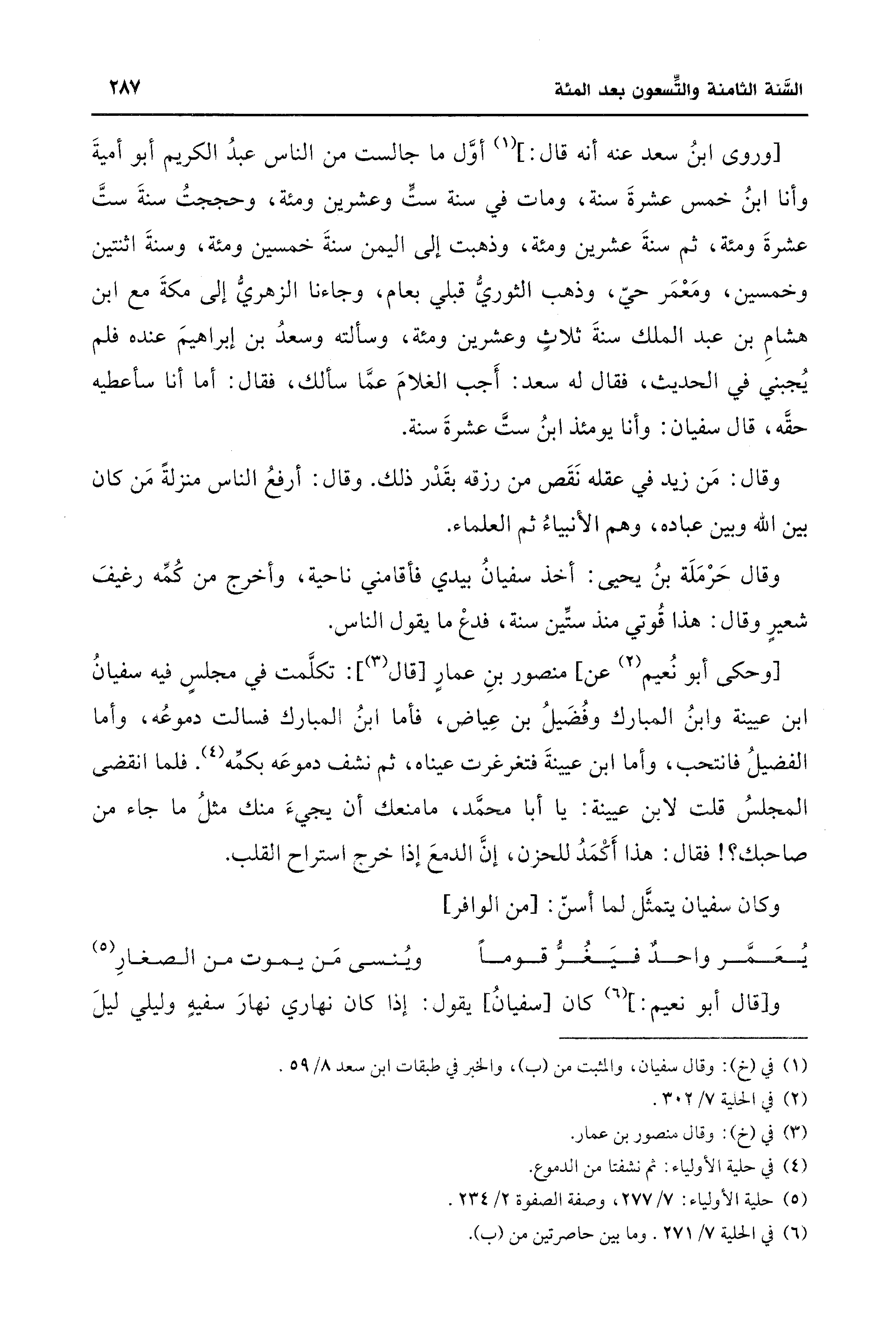 (¬5) حلية الأولياء: 7/ 277، وصفة الصفوة 2/ 234.