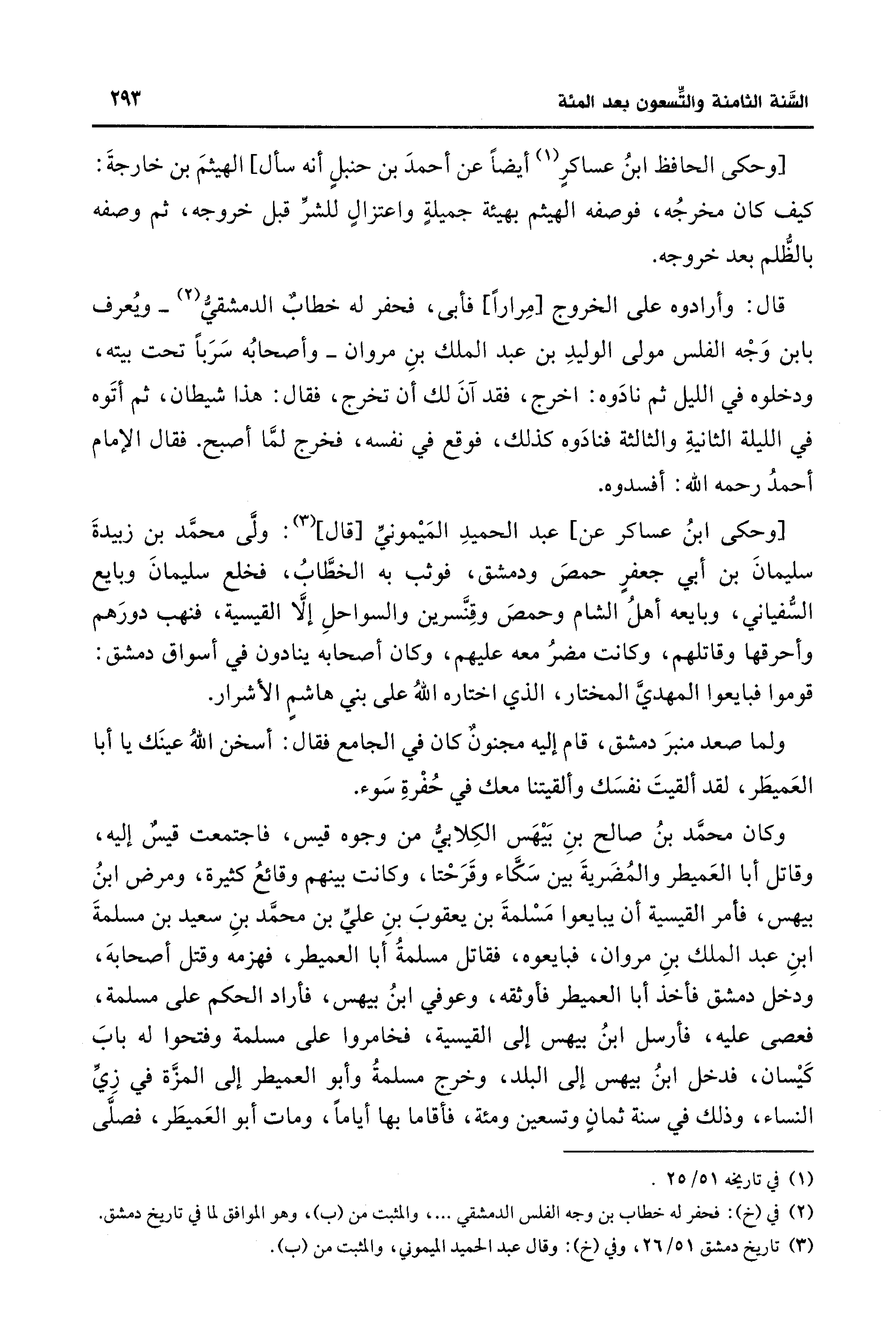 [وحكى الحافظ ابنُ عساكرٍ (¬1) أيضًا عن أحمدَ بن حنبلٍ أنه سأل] الهيثمَ بن خارجةَ: كيف كان مخرجُه، فوصفه الهيثم بهيئة جميلة واعتزال للشرّ قبل خروجه، ثم وصفه بالظُلم بعد خروجه.