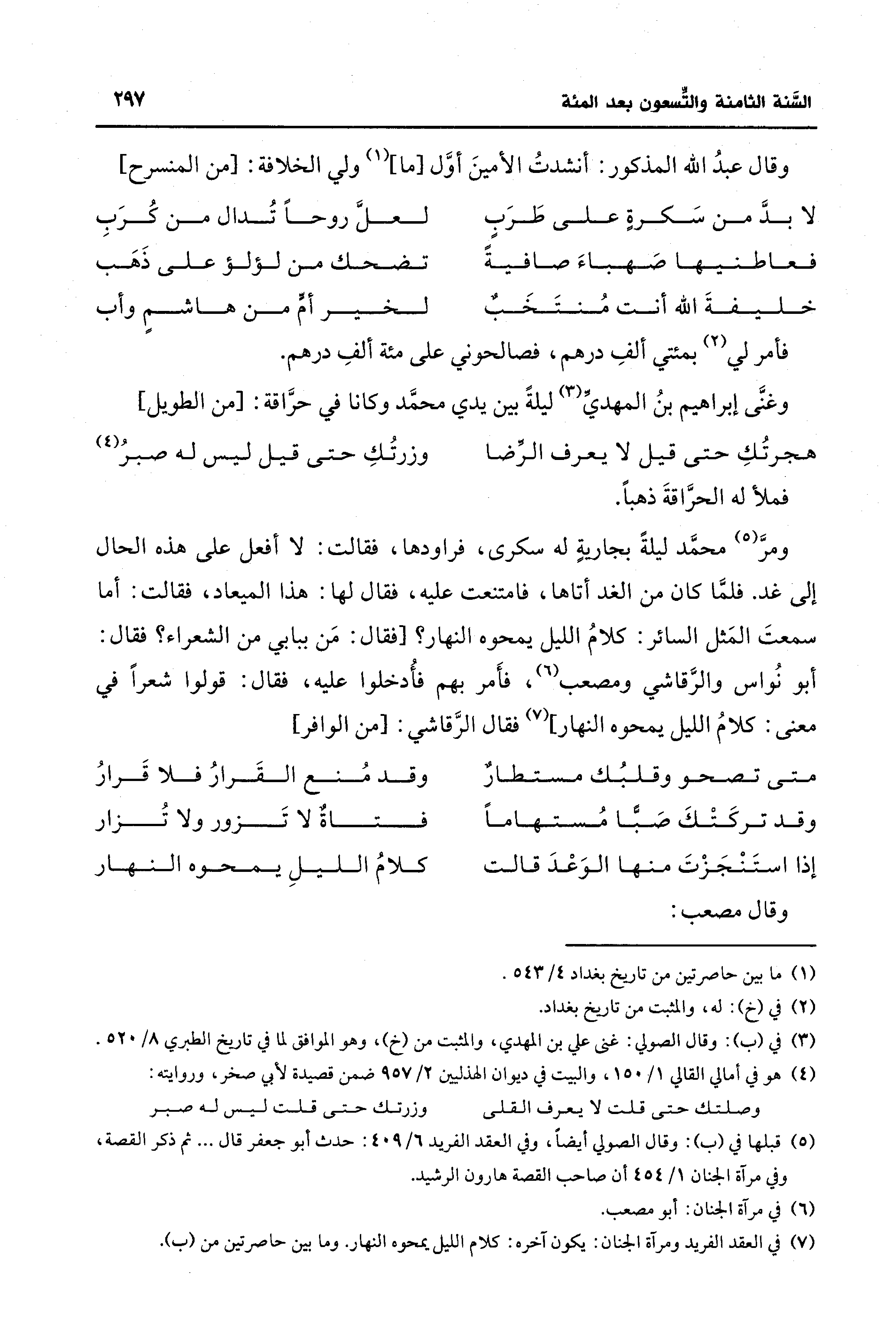 (¬5) قبلها في (ب): وقال الصولي أيضًا، وفي العقد الفريد 6/ 409: حدث أبو جعفر قال ... ثم ذكر القصة، وفي مرآة الجنان 1/ 454 أن صاحب القصة هارون الرشيد.