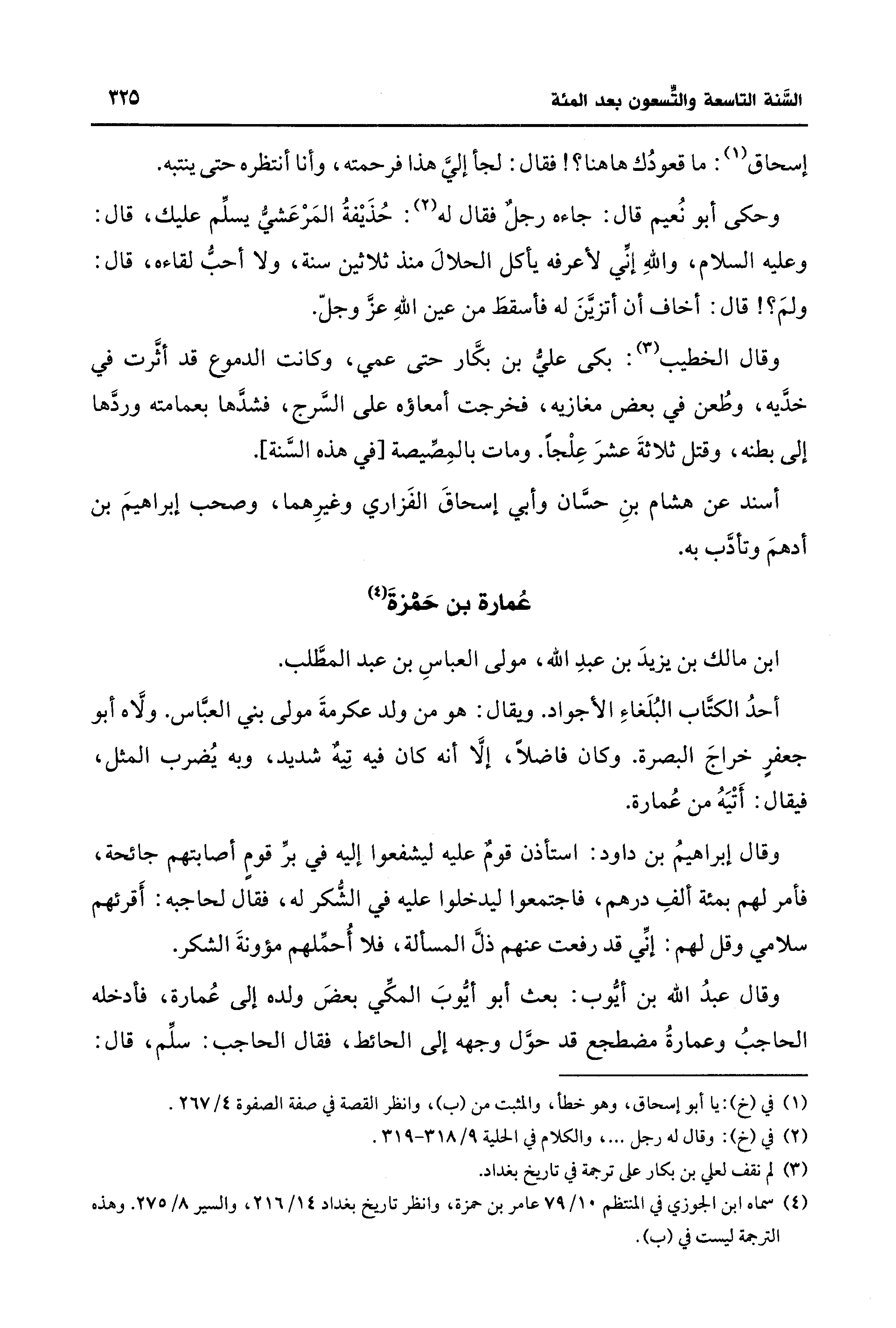 (¬4) سماه ابن الجوزي في المنتظم 10/ 79 عامر بن حمزة، وانظر تاريخ بغداد 14/ 216، والسير 8/ 275. وهذه الترجمة ليست في (ب).