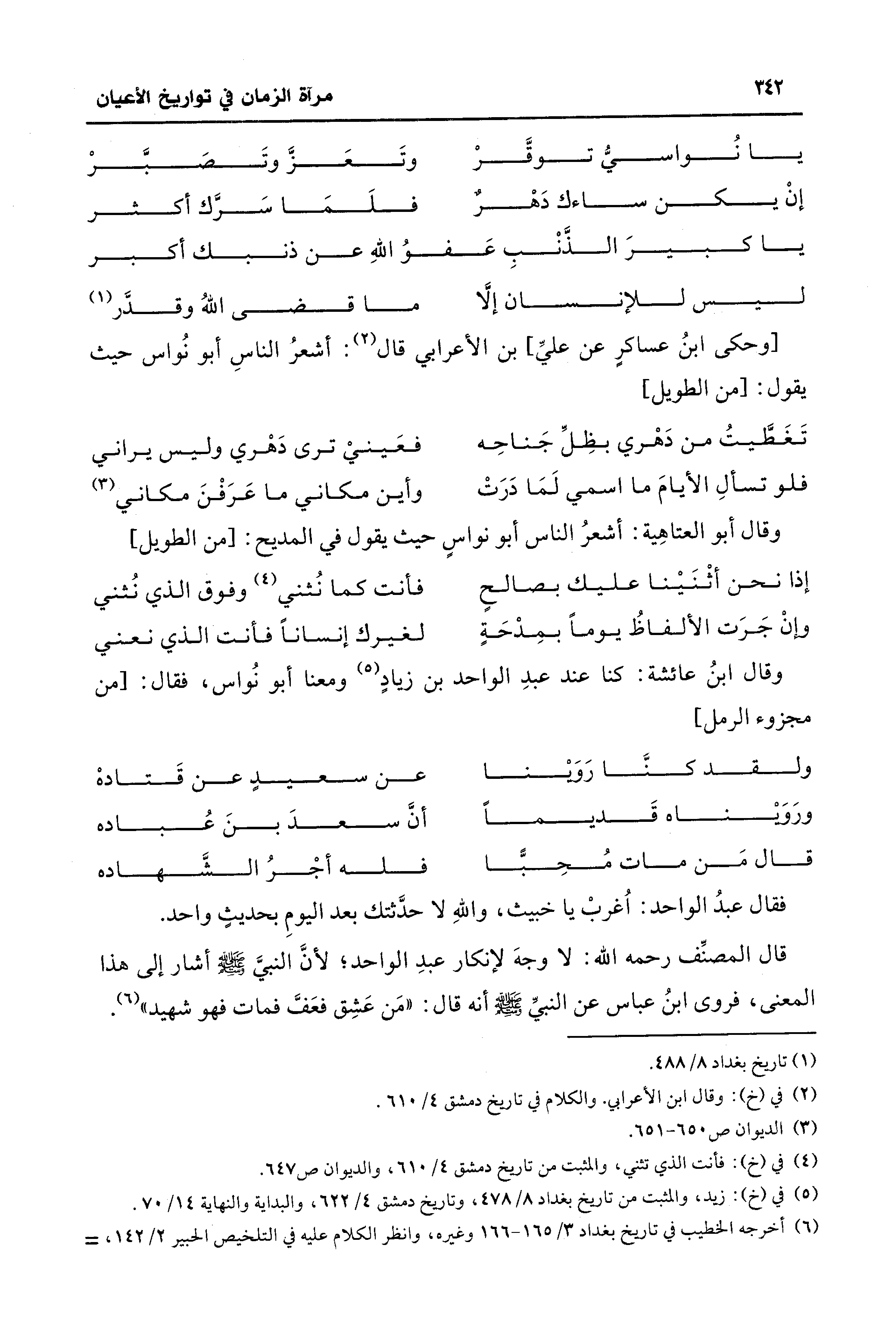 قال المصنِّف رحمه الله: لا وجهَ لإنكار عبدِ الواحد؛ لأنَّ النبيَّ - صلى الله عليه وسلم - أشار إلى هذا المعنى، فروى ابنُ عباس عن النبيِّ - صلى الله عليه وسلم - أنه قال: "مَن عَشِق فعَفَّ فمات فهو شهيد" (¬6).