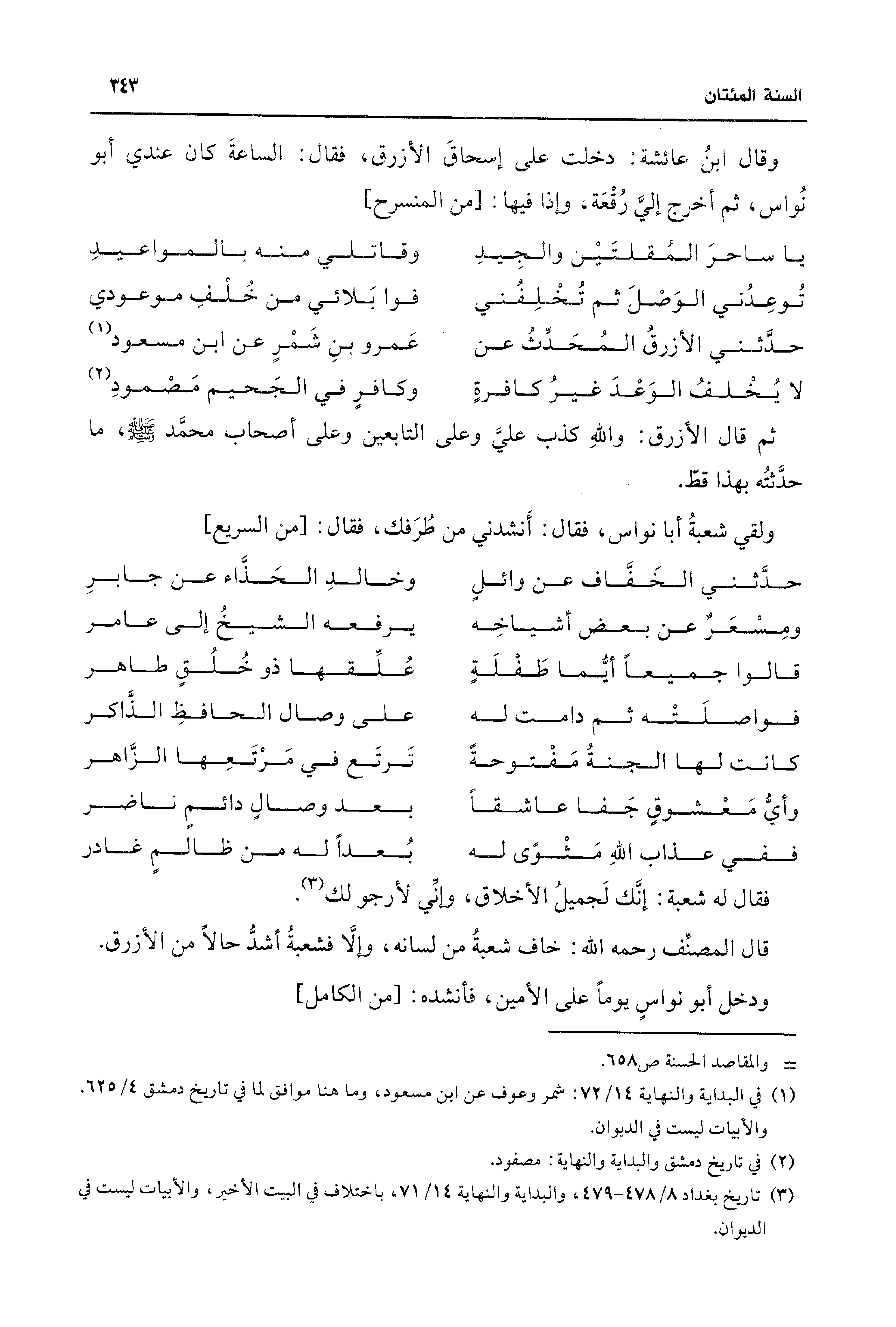 (¬3) تاريخ بغداد 8/ 478 - 479، والبداية والنهاية 14/ 71، باختلاف في البيت الأخير، والأبيات ليست في الديوان.