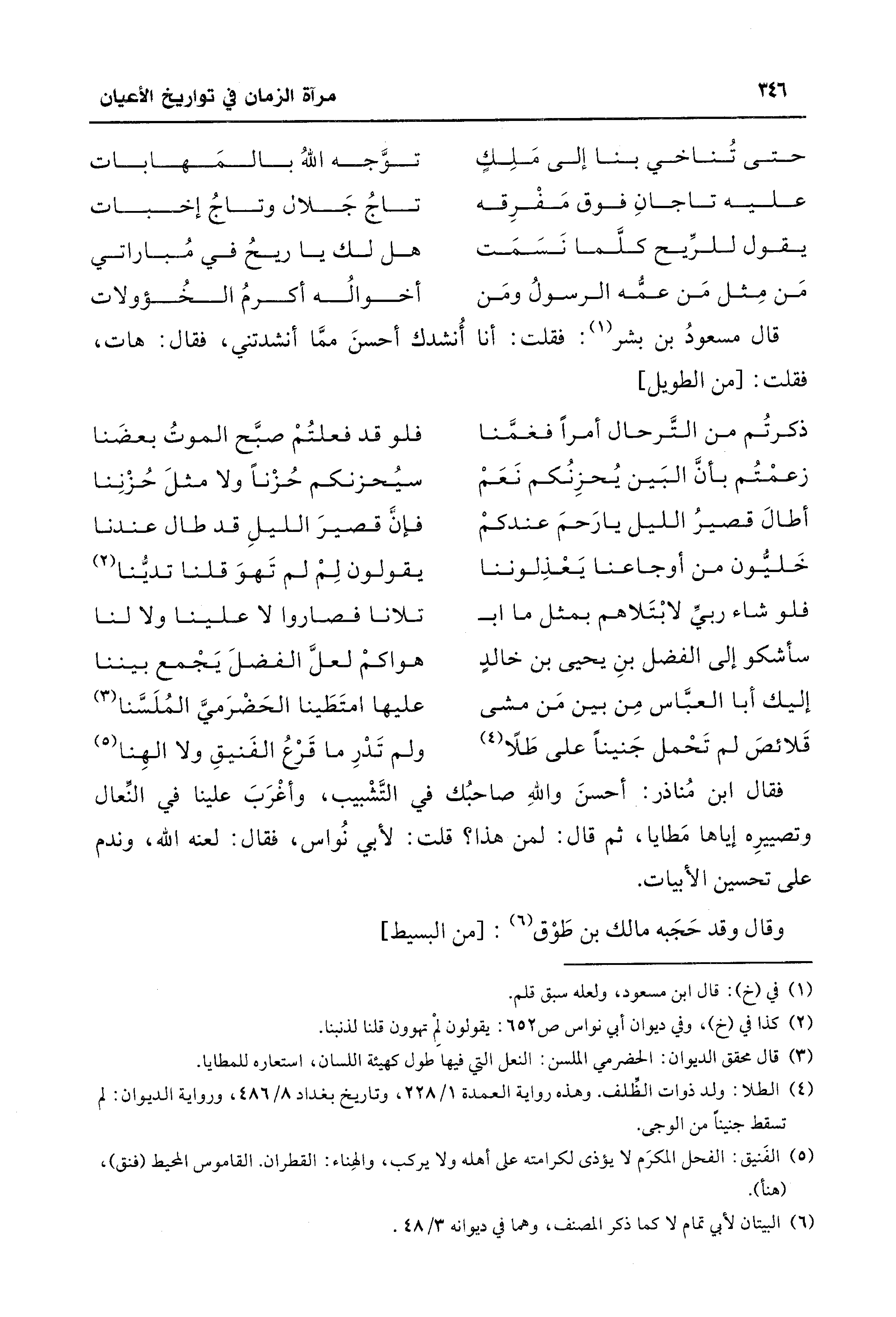 قال مسعودُ بن بشر (¬1): فقلت: أنا أُنشدك أحسنَ ممَّا أنشدتني، فقال: هات، فقلت: [من الطويل]