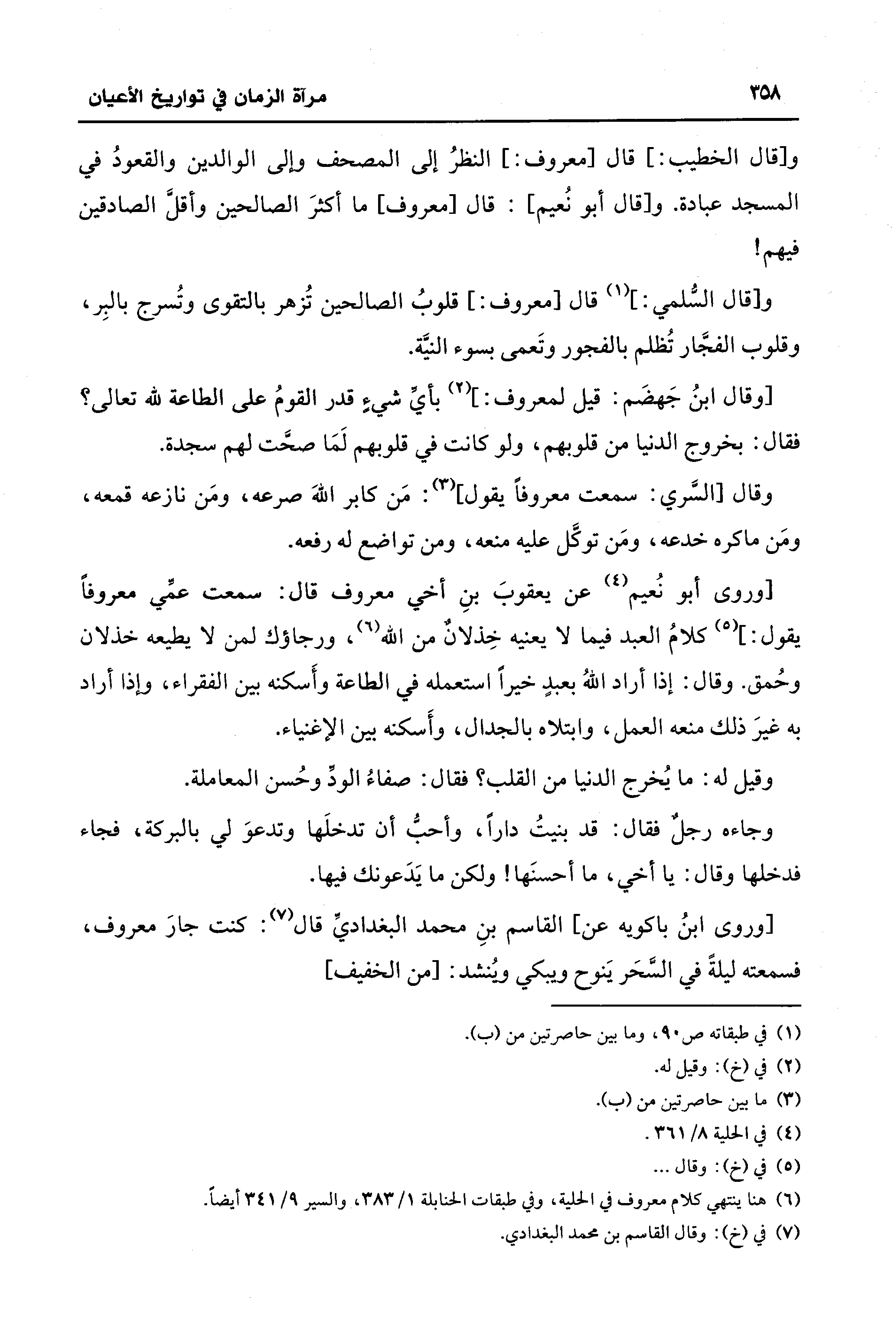 (¬6) هنا ينتهي كلام معروف في الحلية، وفي طبقات الحنابلة 1/ 383، والسير 9/ 341 أيضًا.