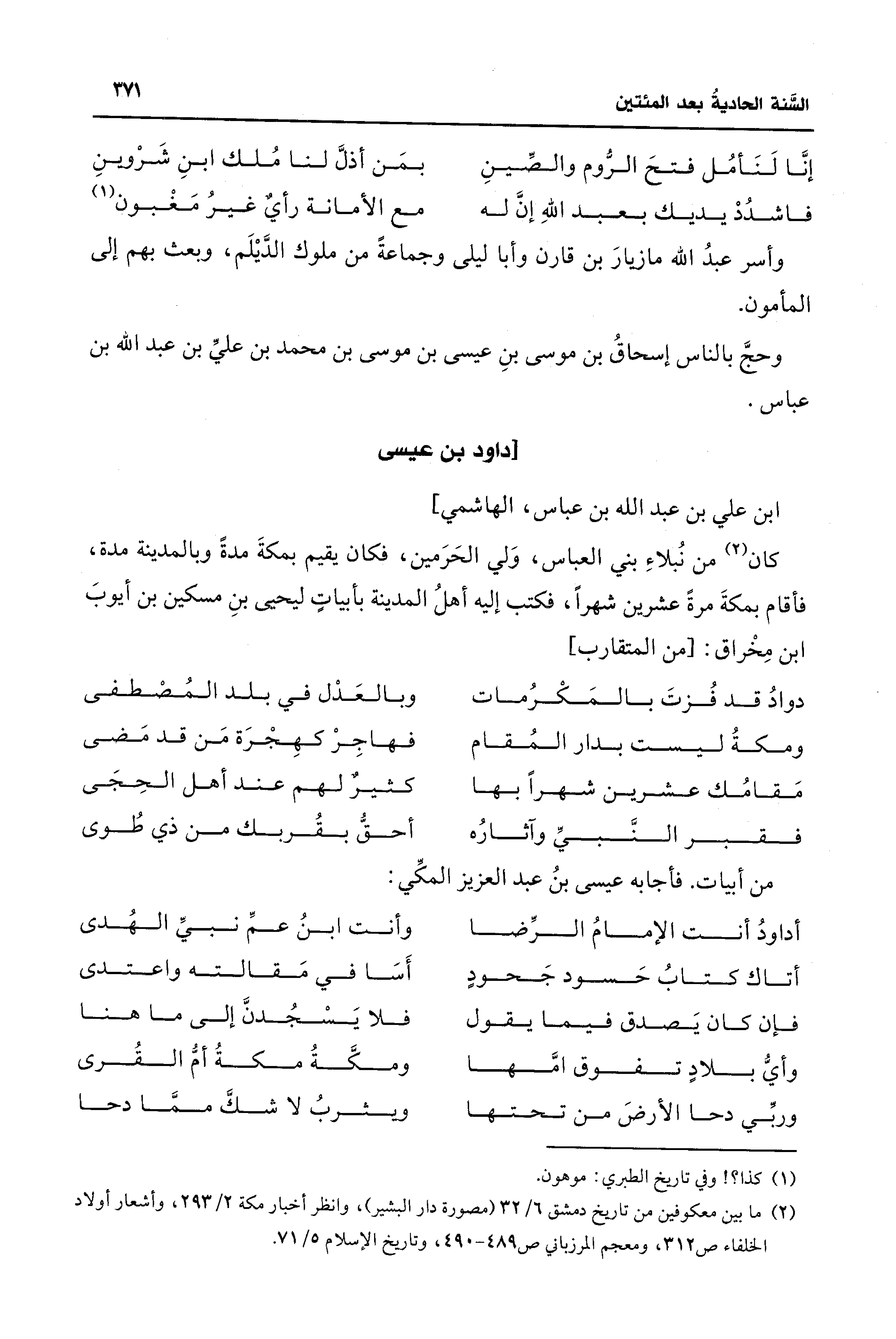 (¬2) ما بين معكوفين من تاريخ دمشق 6/ 32 (مصورة دار البشير)، وانظر أخبار مكة 2/ 293، وأشعار أولاد الخلفاء ص 312، ومعجم المرزباني ص 489 - 490، وتاريخ الإسلام 5/ 71.