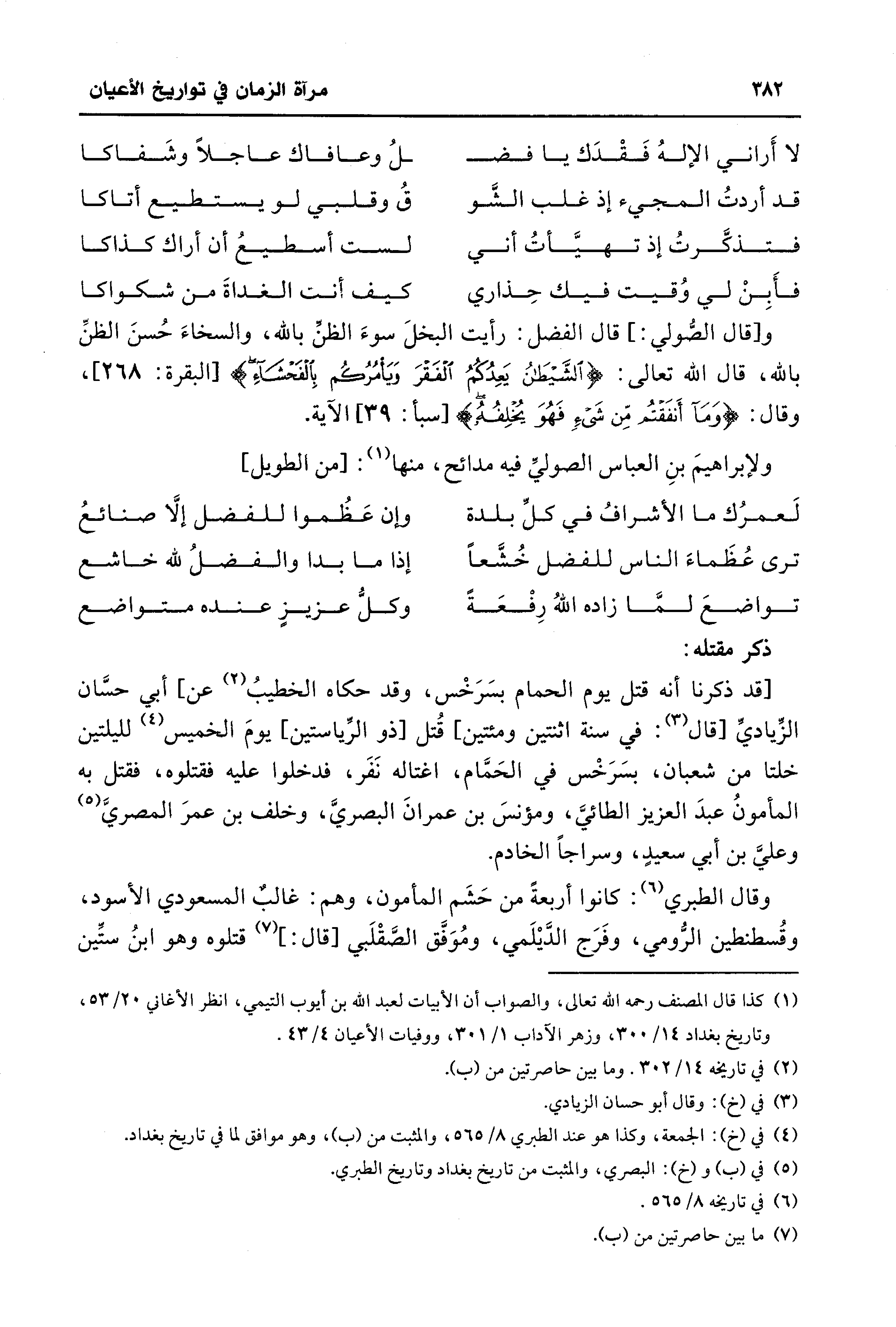 و[قال الصُّولي: ] قال الفضل: رأيت البخلَ سوءَ الظنِّ بالله، والسخاءَ حُسنَ الظنِّ بالله، قال الله تعالى: {الشَّيطَانُ يَعِدُكُمُ الْفَقْرَ وَيَأْمُرُكُمْ بِالْفَحْشَاءِ} [البقرة: 268]، وقال: {وَمَا أَنْفَقْتُمْ مِنْ شَيءٍ فَهُوَ يُخْلِفُهُ} [سبأ: 39] الآية.