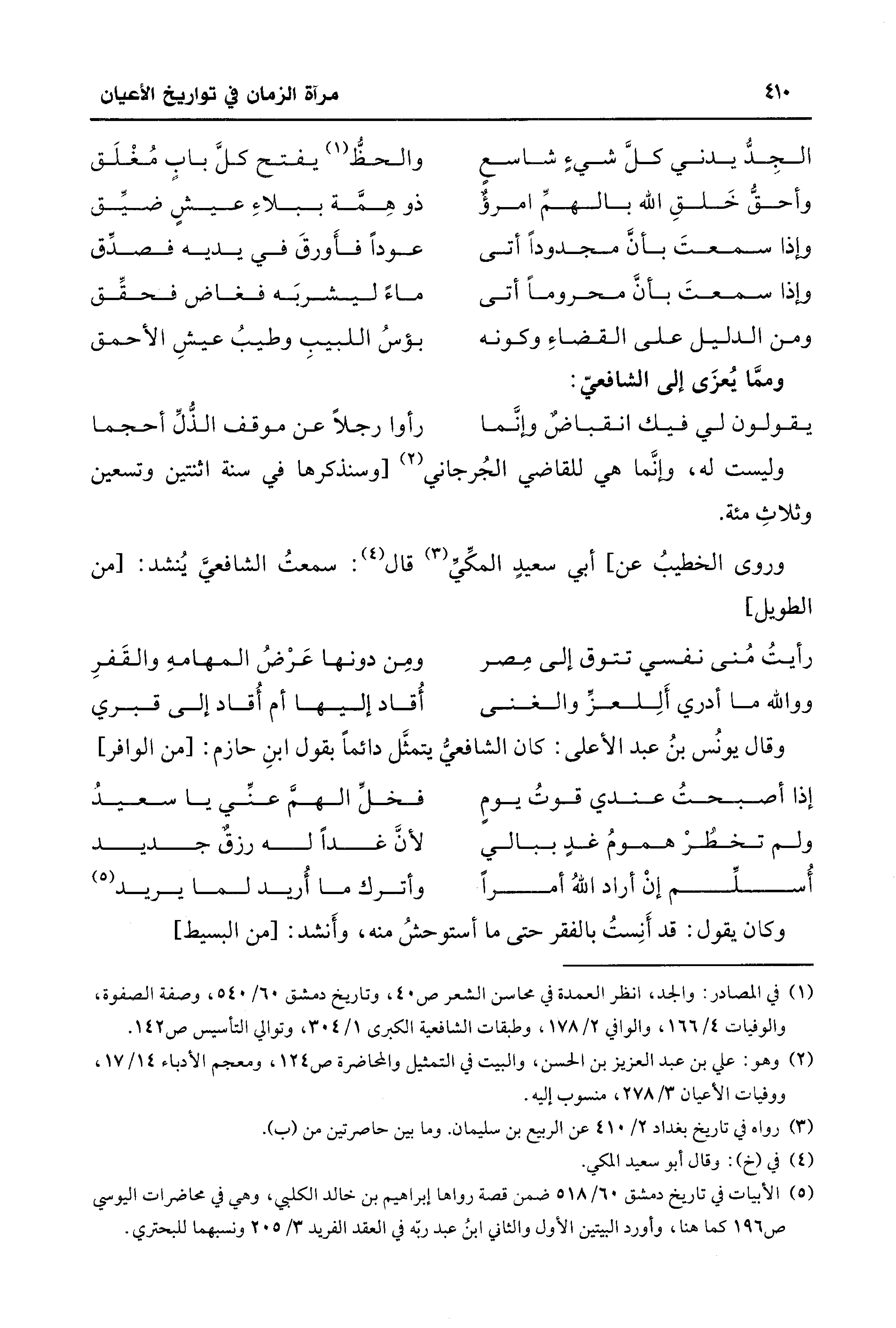(¬5) الأبيات في تاريخ دمشق 60/ 518 ضمن قصة رواها إبراهيم بن خالد الكلبي، وهي في محاضرات اليوسي ص 196 كما هنا، وأورد البيتين الأول والثاني ابنُ عبد ربّه في العقد الفريد 3/ 205 ونسبهما للبحتري.