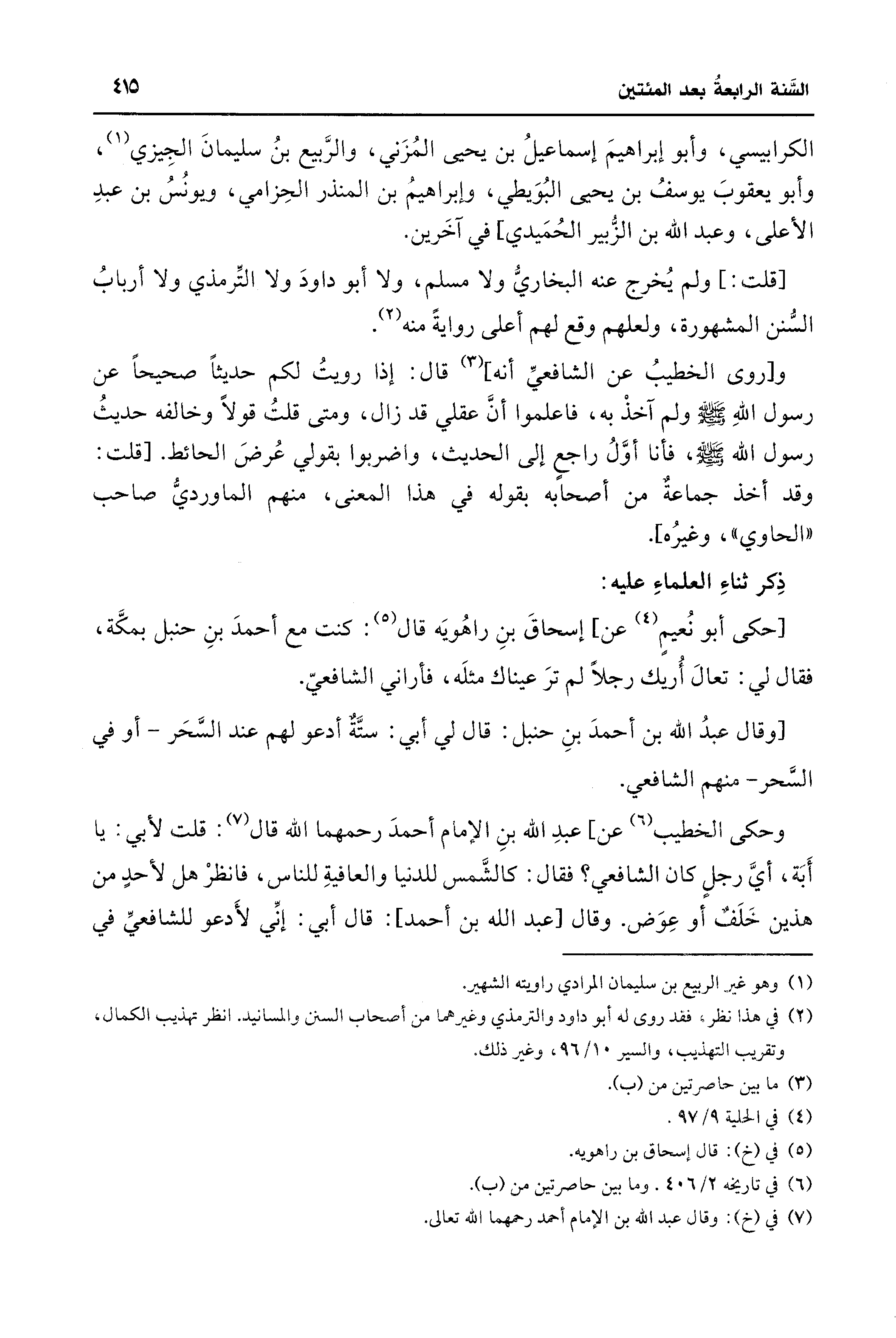 [وقال عبدُ الله بن أحمدَ بنِ حنبل: قال لي أبي: ستَّةٌ أدعو لهم عند السَّحَر -أو في السَّحر- منهم الشافعي.