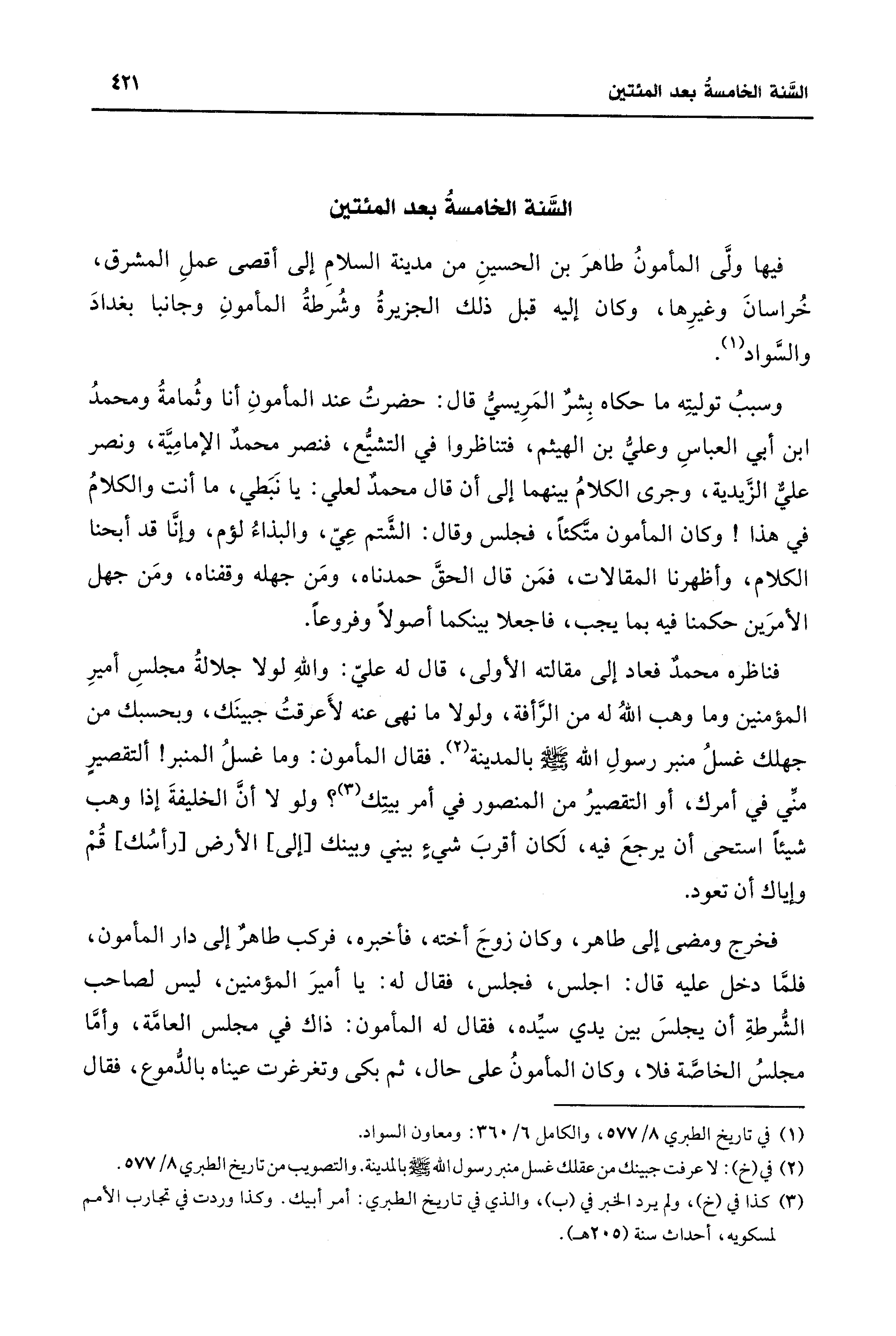 (¬3) كذا في (خ)، ولم يرد الخبر في (ب)، والذي في تاريخ الطبري: أمر أبيك. وكذا وردت في تجارب الأمم لمسكويه، أحداث سنة (205 هـ).