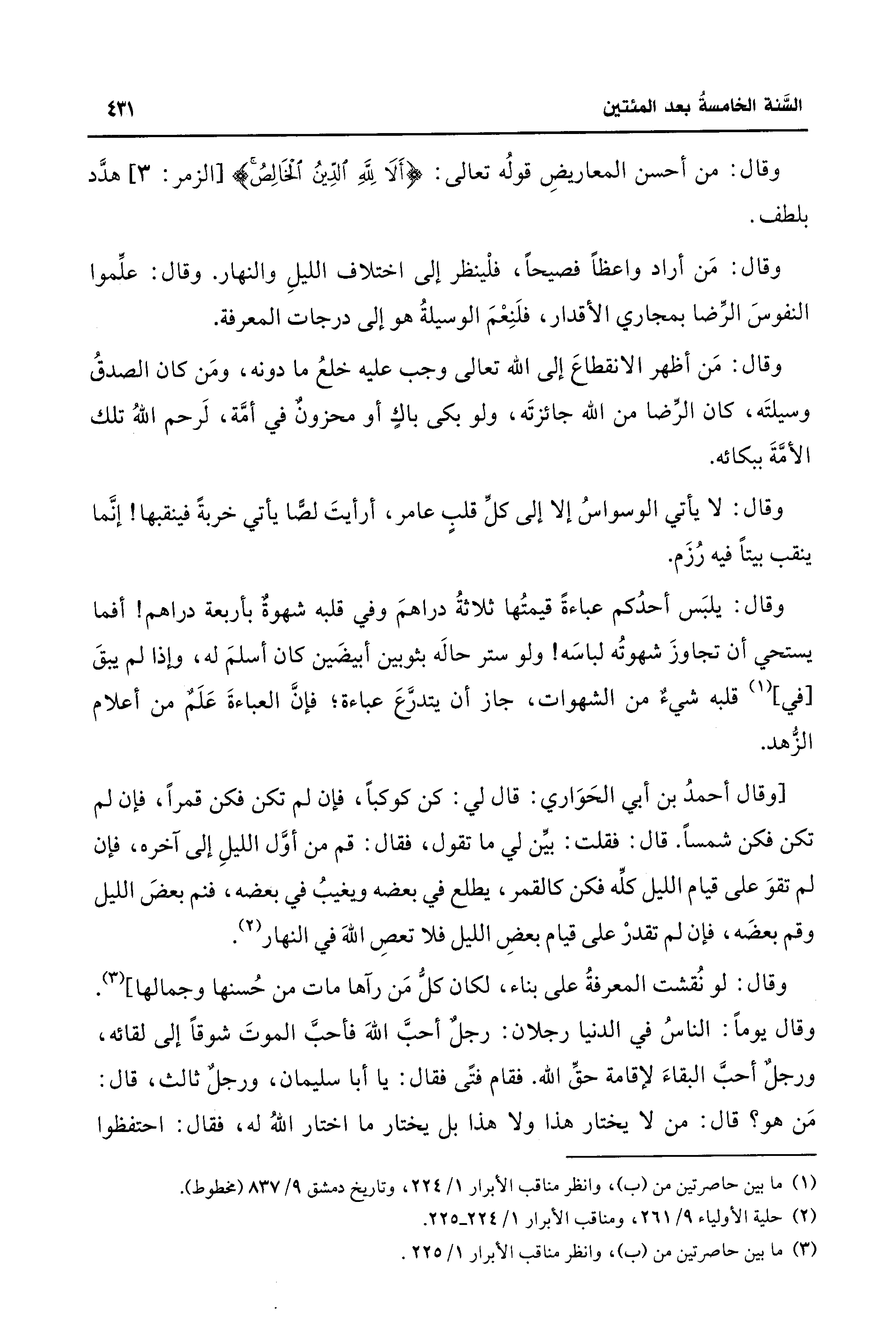 (¬2) حلية الأولياء 9/ 261، ومناقب الأبرار 1/ 224 - 225.