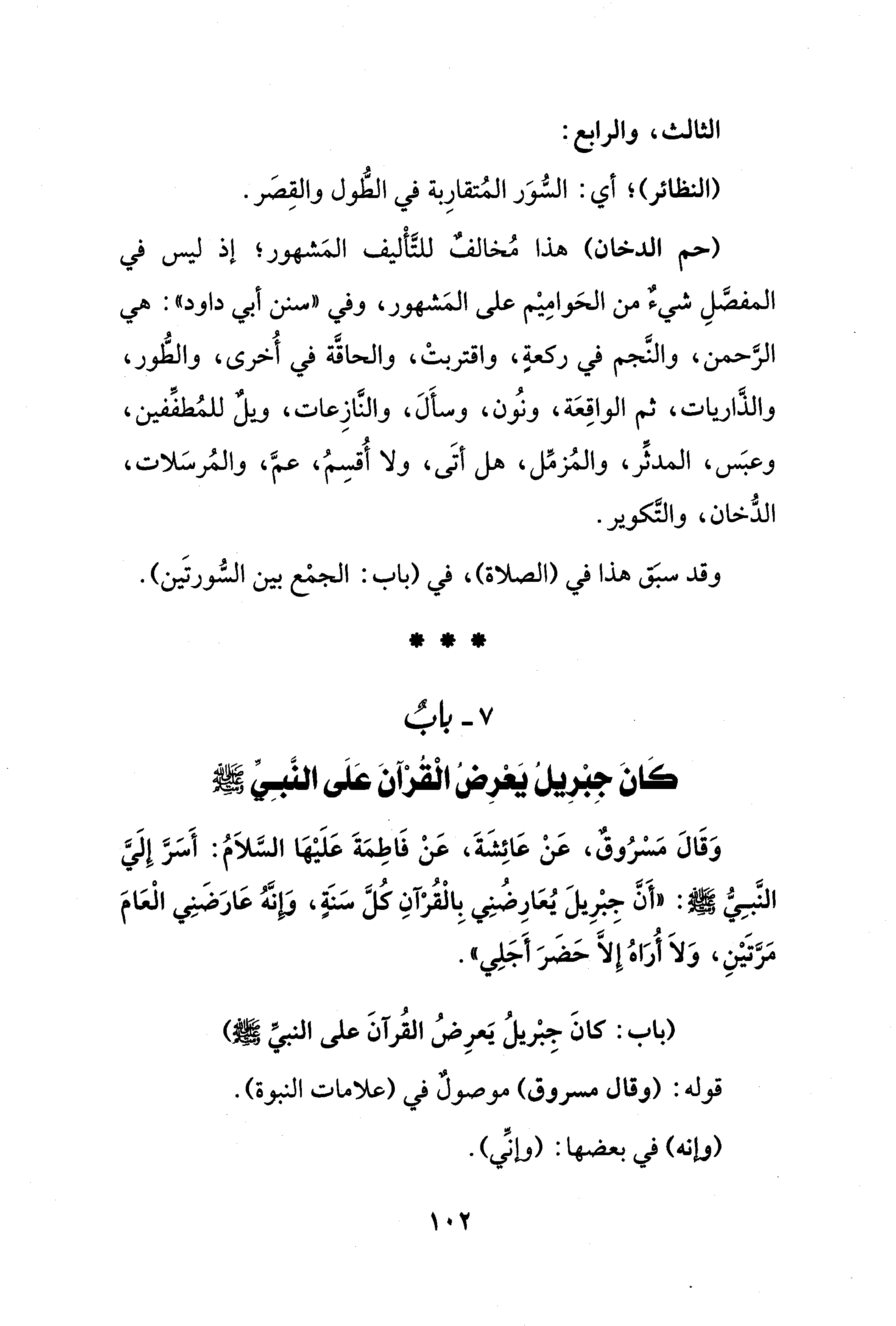 7 - بابٌ كَانَ جِبْرِيلُ يَعْرِضُ الْقُرْآنَ عَلَى النَّبِيِّ - صلى الله عليه وسلم -