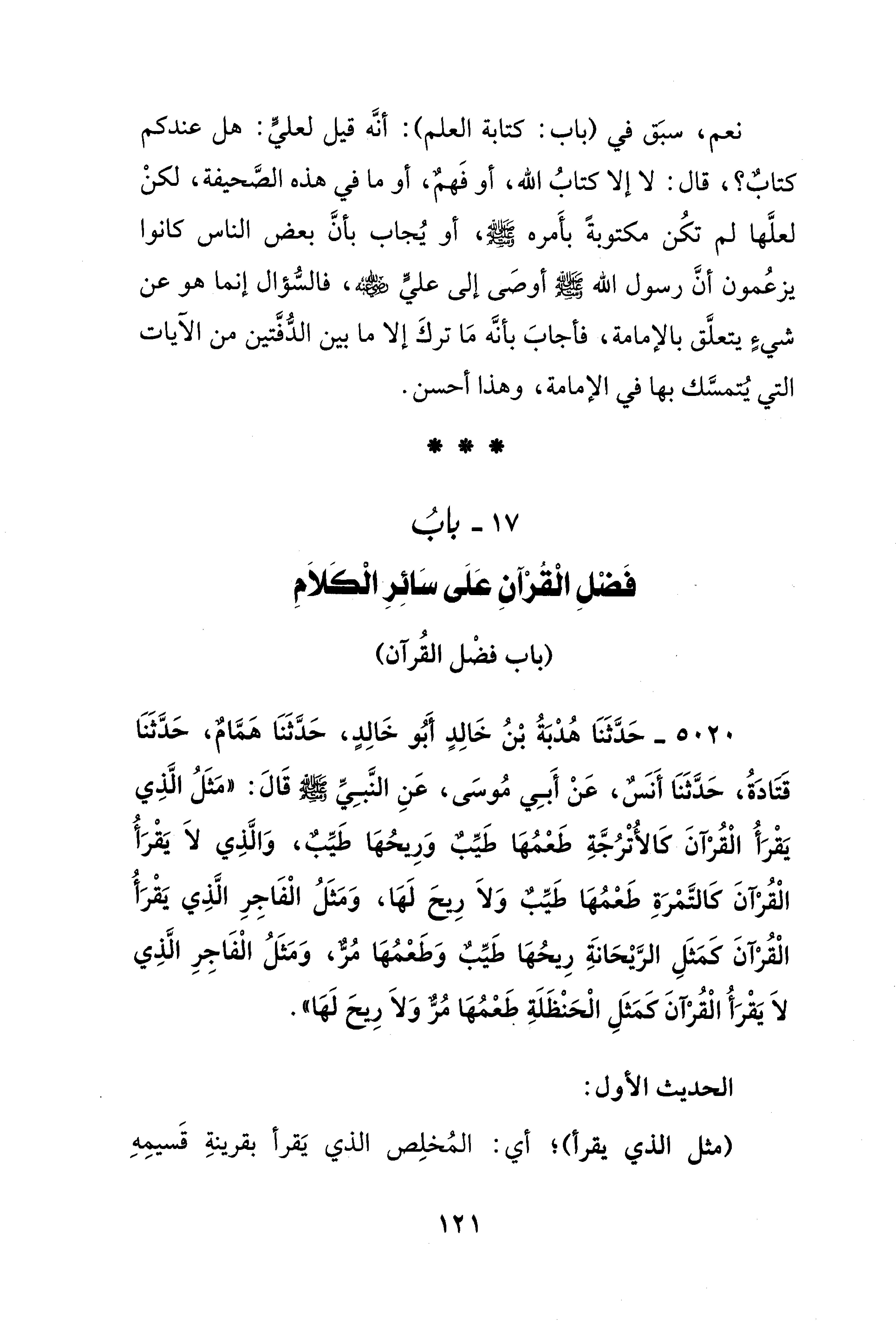 نعم، سَبق في (باب: كتابة العلم): أنَّه قيل لعلي: هل عندكم كتابٌ؟، قال: لا إلا كتابُ الله، أو فَهمٌ، أو ما في هذه الصَّحيفة، لكنْ لعلَّها لم تكُن مكتوبةً بأَمره - صلى الله عليه وسلم -، أو يُجاب بأنَّ بعض الناس كانوا يزعُمون أنَّ رسول الله - صلى الله عليه وسلم - أوصَى إلى عليٍّ - رضي الله عنه -، فالسُّؤال إنما هو عن شيءٍ يتعلَّق بالإمامة، فأجابَ بأنَّه مَا تركَ إلا ما بين الدُّفَّتين من الآيات التي يُتمسَّك بها في الإمامة، وهذا أحسن.