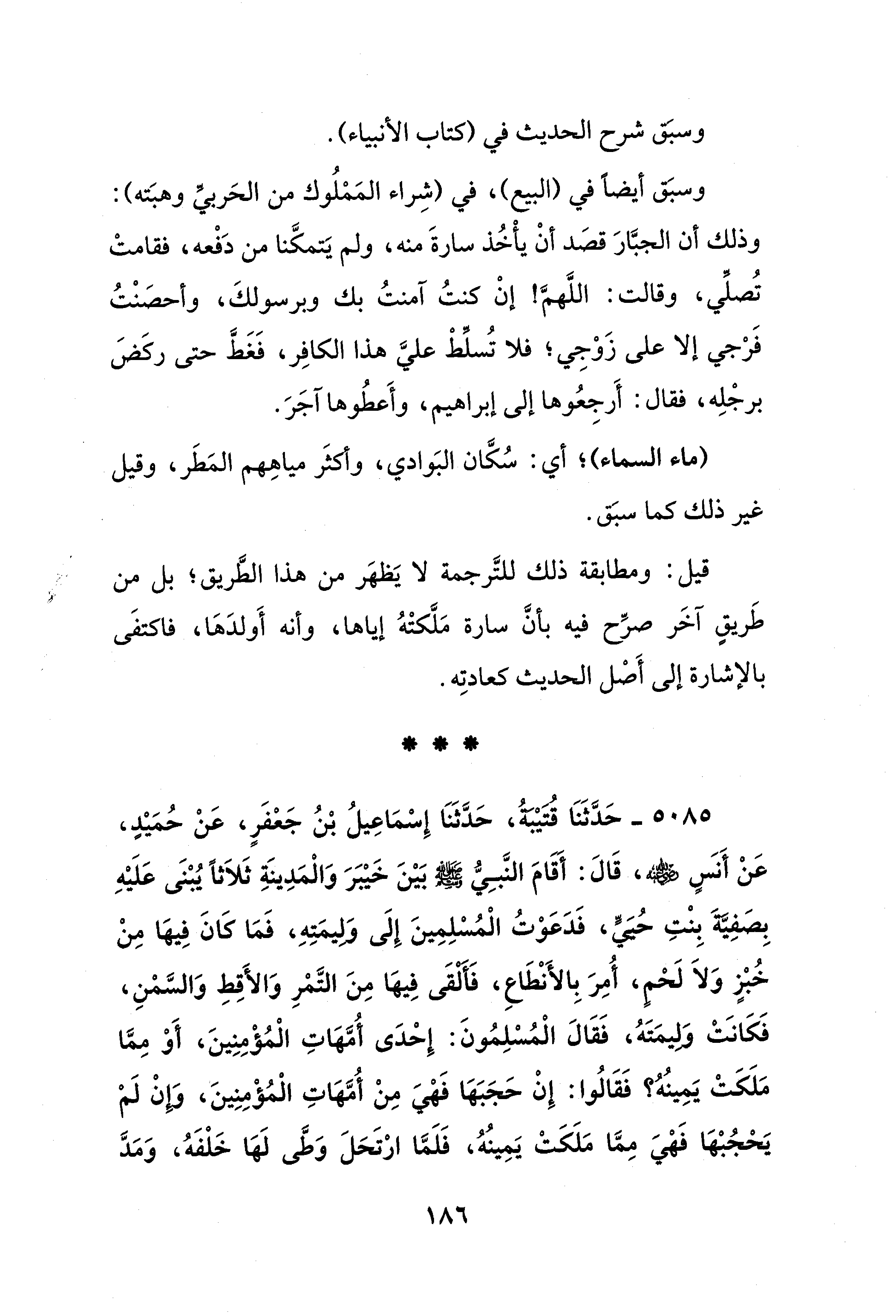 وسبق أيضًا في (البيع)، في (شِراء المَمْلُوك من الحَربيّ وهبَته): وذلك أن الجبَّارَ قصَد أنْ يأْخُذ سارةَ منه، ولم يتمكَّنا من دَفْعه، فقامتْ تُصلِّي، وقالت: اللهمَّ! إنْ كنتُ آمنتُ بك وبرسولكَ، وأحصَنْتُ فَرْجي إلا على زَوْجِي؛ فلا تُسلِّطْ عليَّ هذا الكافِر، فَغَطَّ حتى ركَضَ برجْلِه، فقال: أَرجِعُوها إلى إبراهيم، وأَعطُوها آجَرَ.