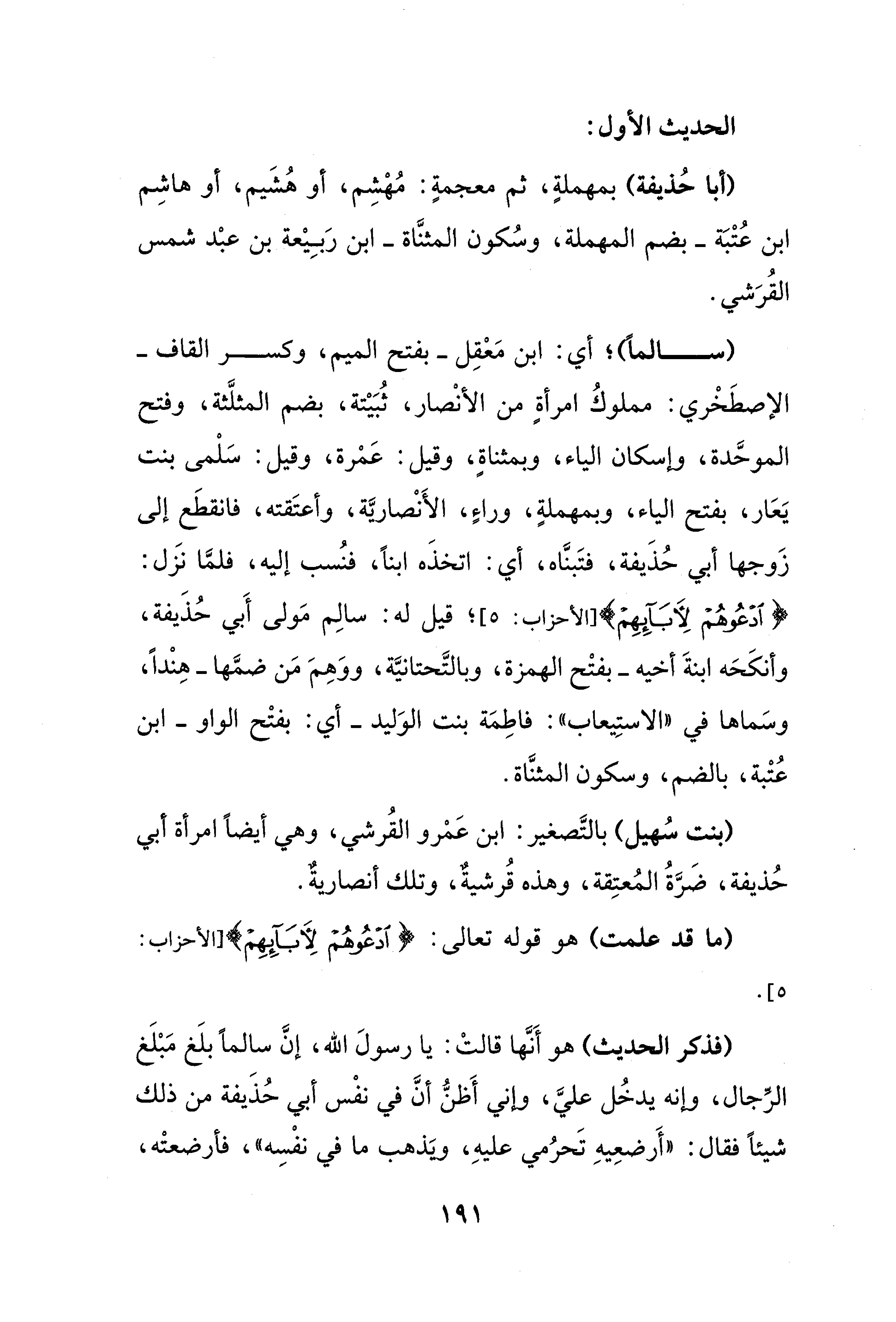 (بنت سُهيل) بالتَّصغير: ابن عَمْرو القُرشي، وهي أيضًا امرأة أبي حُذيفة، ضَرَّةُ المُعتِقة، وهذه قُرشية، وتلك أنصارية.