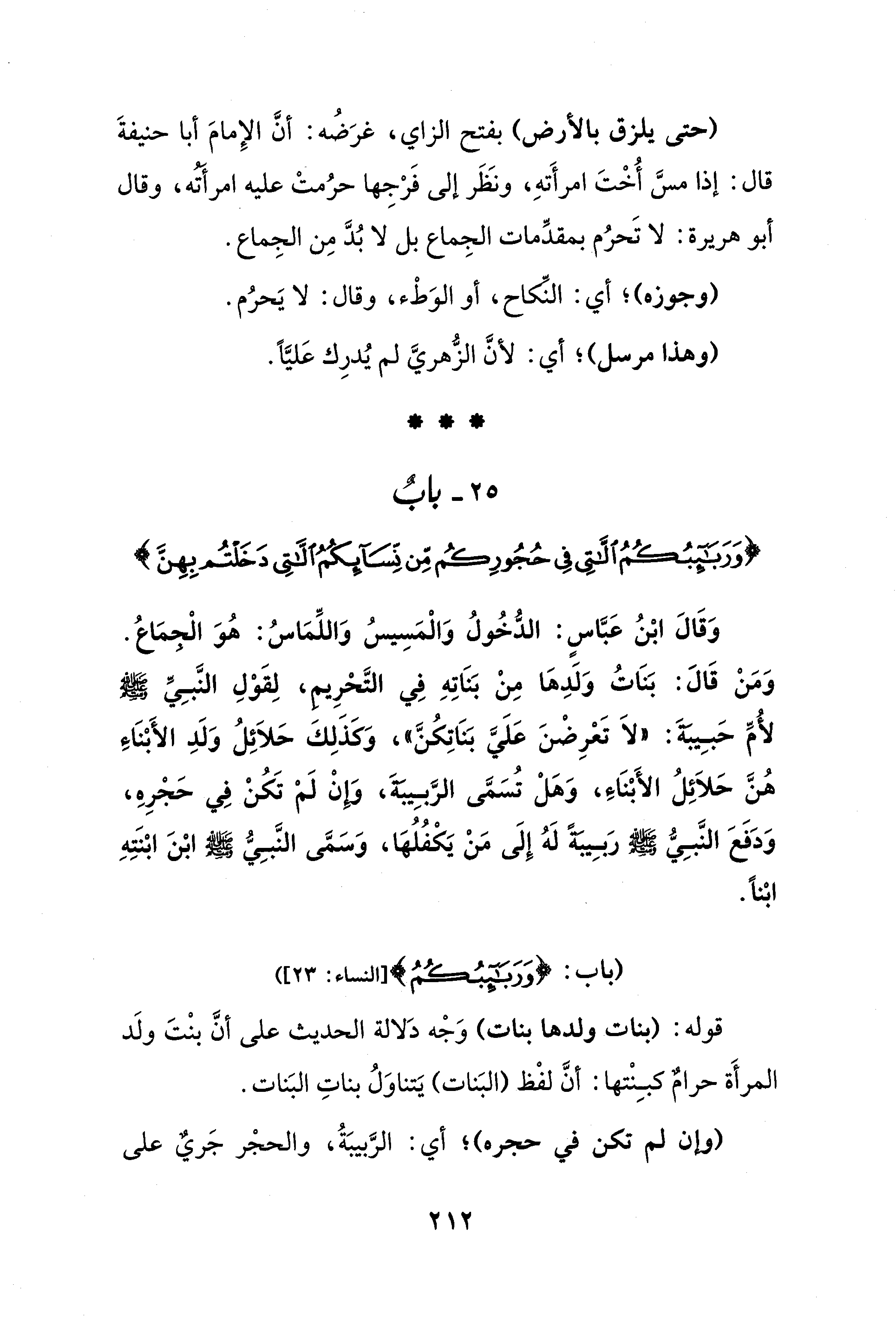 25 - بابٌ {وَرَبَائِبُكُمُ اللَّاتِي فِي حُجُورِكُمْ مِنْ نِسَائِكُمُ اللَّاتِي دَخَلْتُمْ بِهِنَّ}