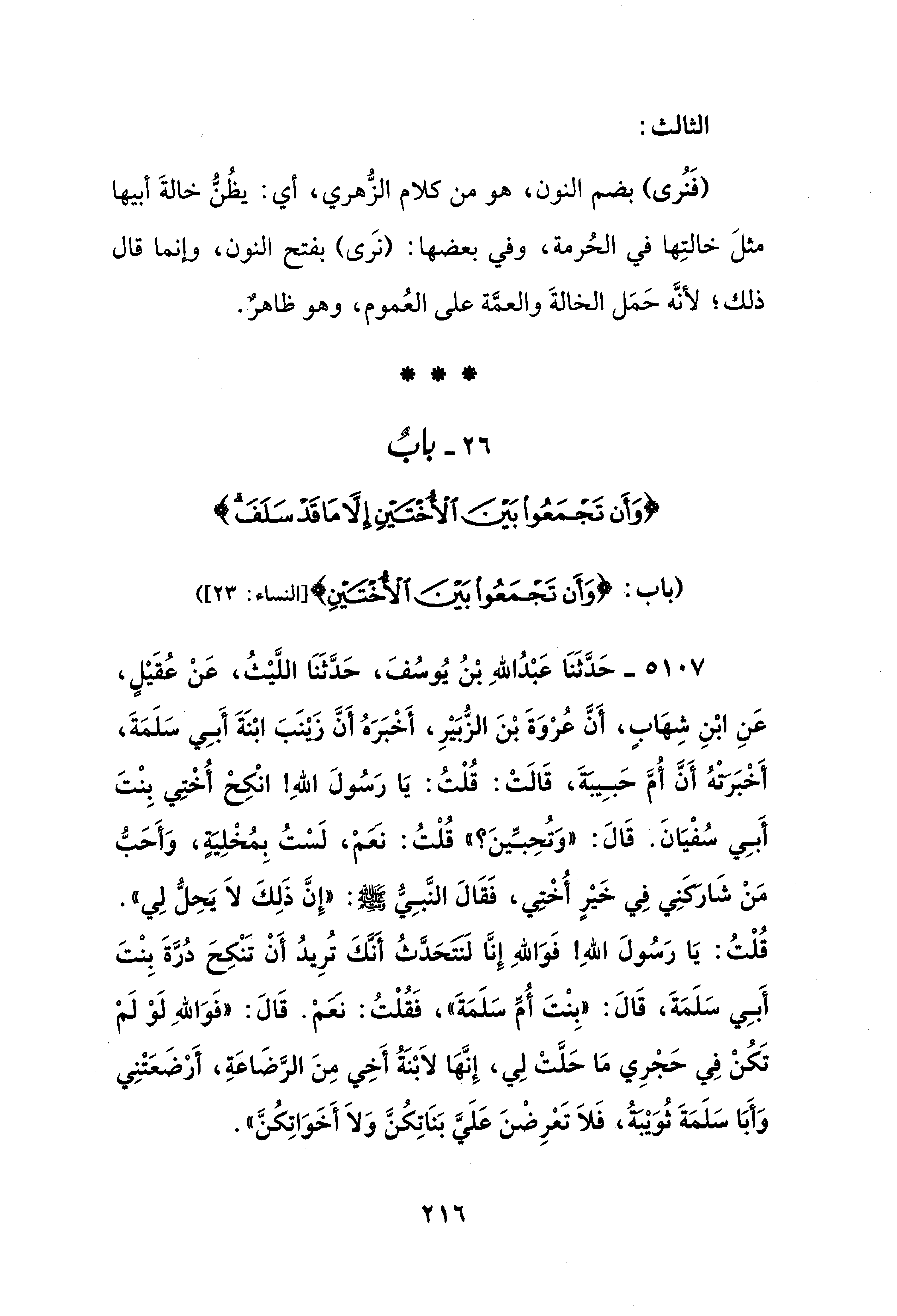 (باب: {وَأَنْ تَجْمَعُوا بَيْنَ الْأُخْتَيْنِ} [النساء: 23])