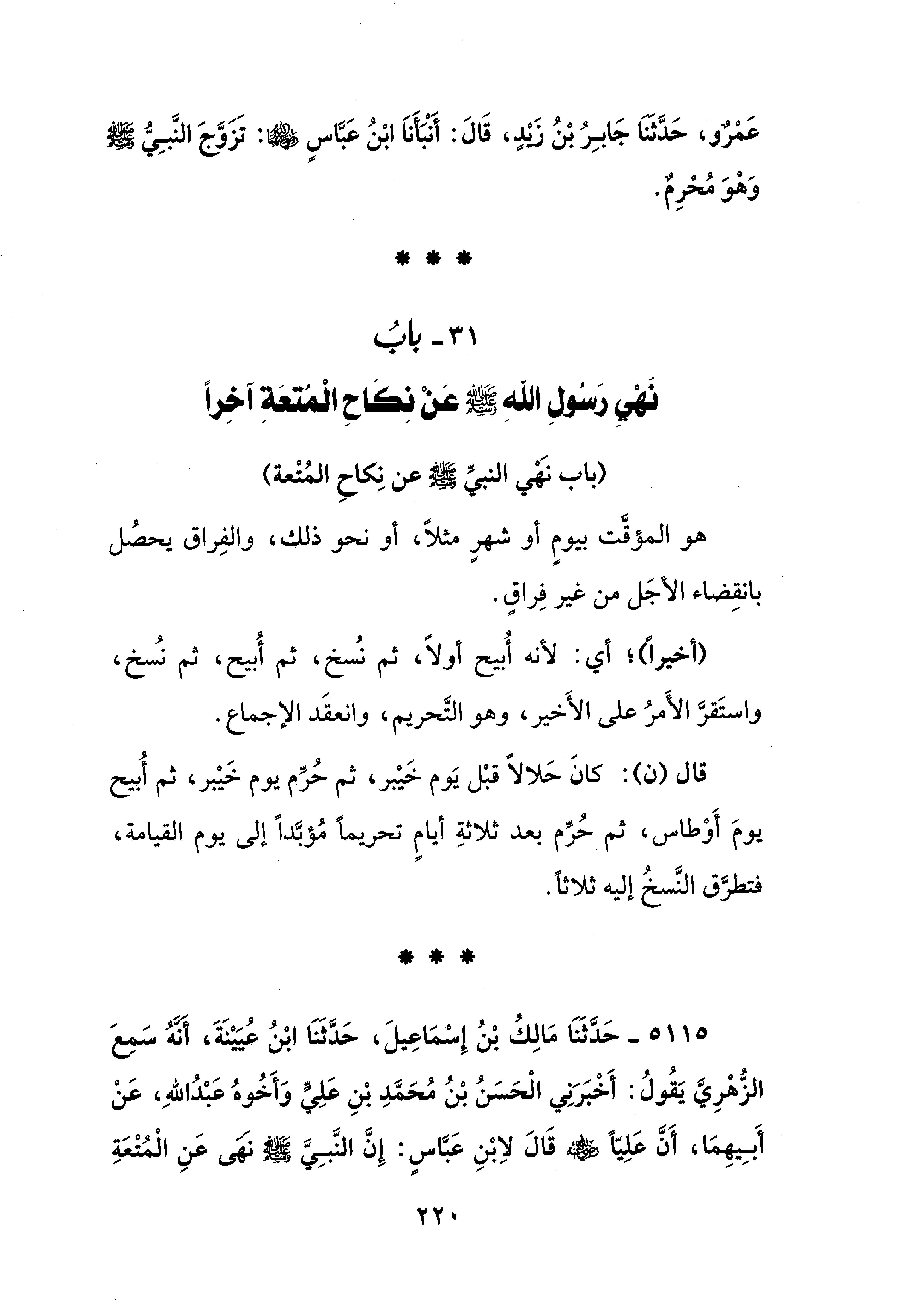 31 - بابُ نَهْيِ رَسولِ اللهِ - صلى الله عليه وسلم - عَنْ نِكَاحِ الْمُتعَةِ آخِرًا