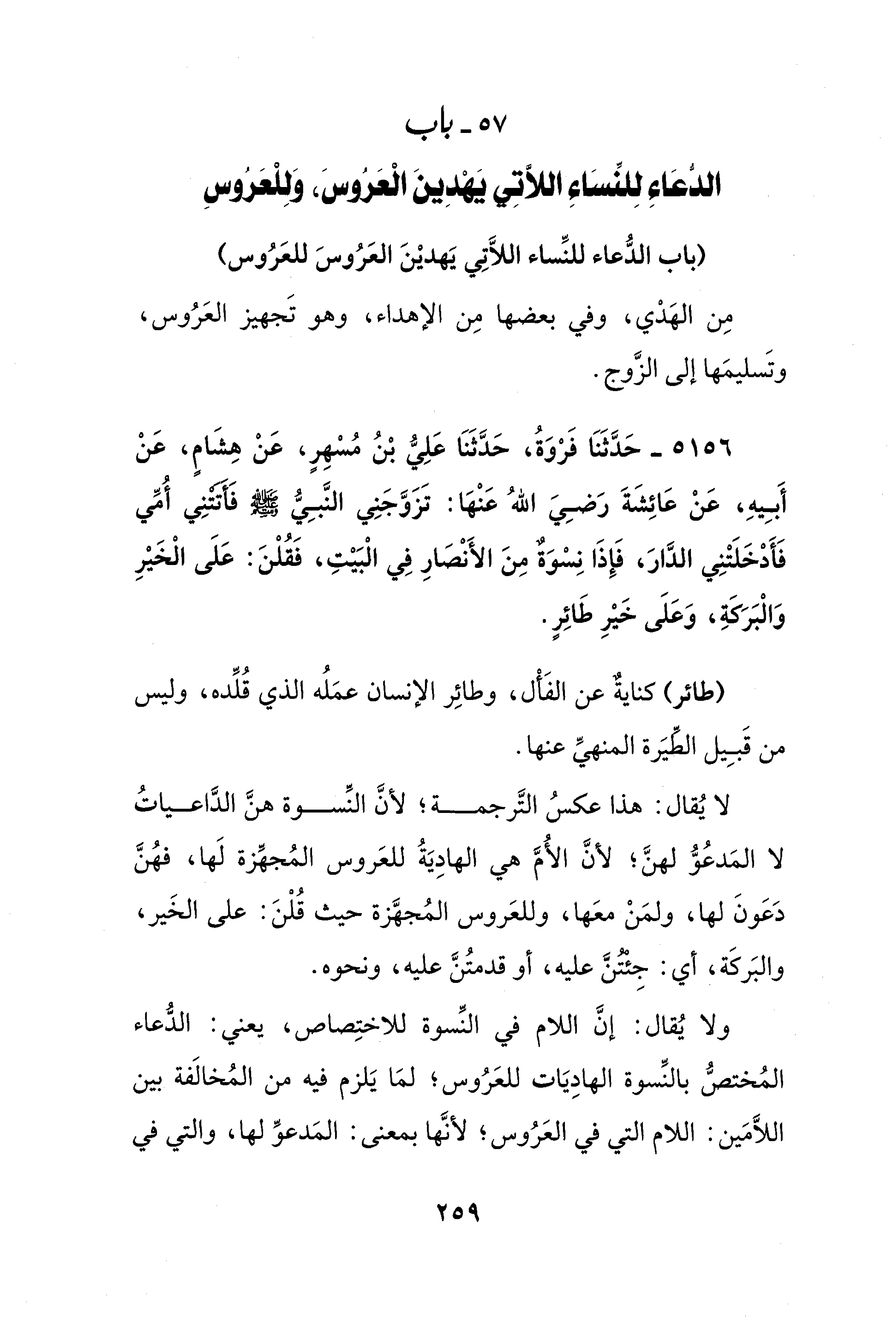 57 - باب الدعَاء لِلنِّسَاء اللأتِي يَهْدِين الْعَرُوسَ، وَلِلْعَرُوسِ
