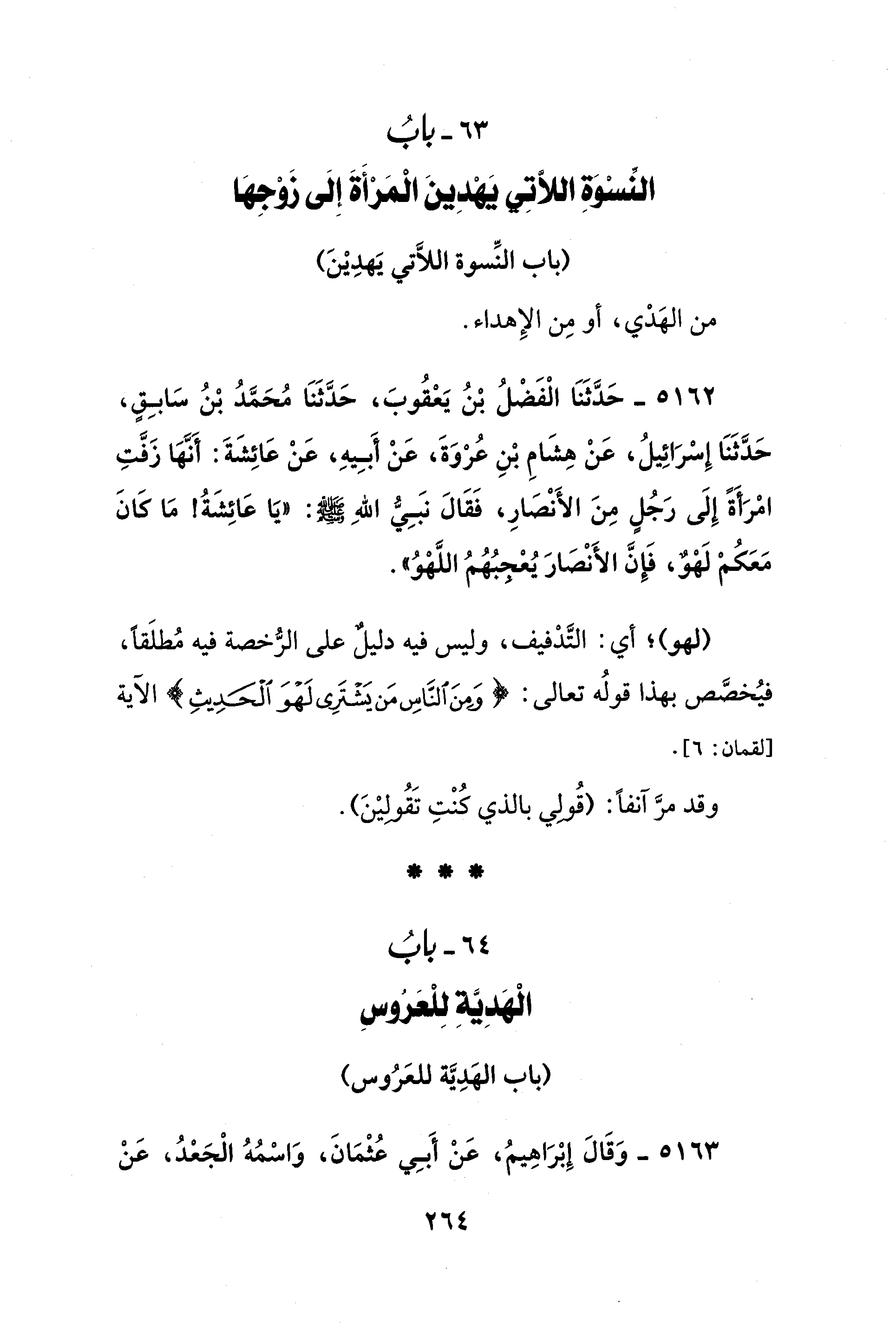 64 - بابُ الْهَدِيَّةِ لِلْعَرُوسِ