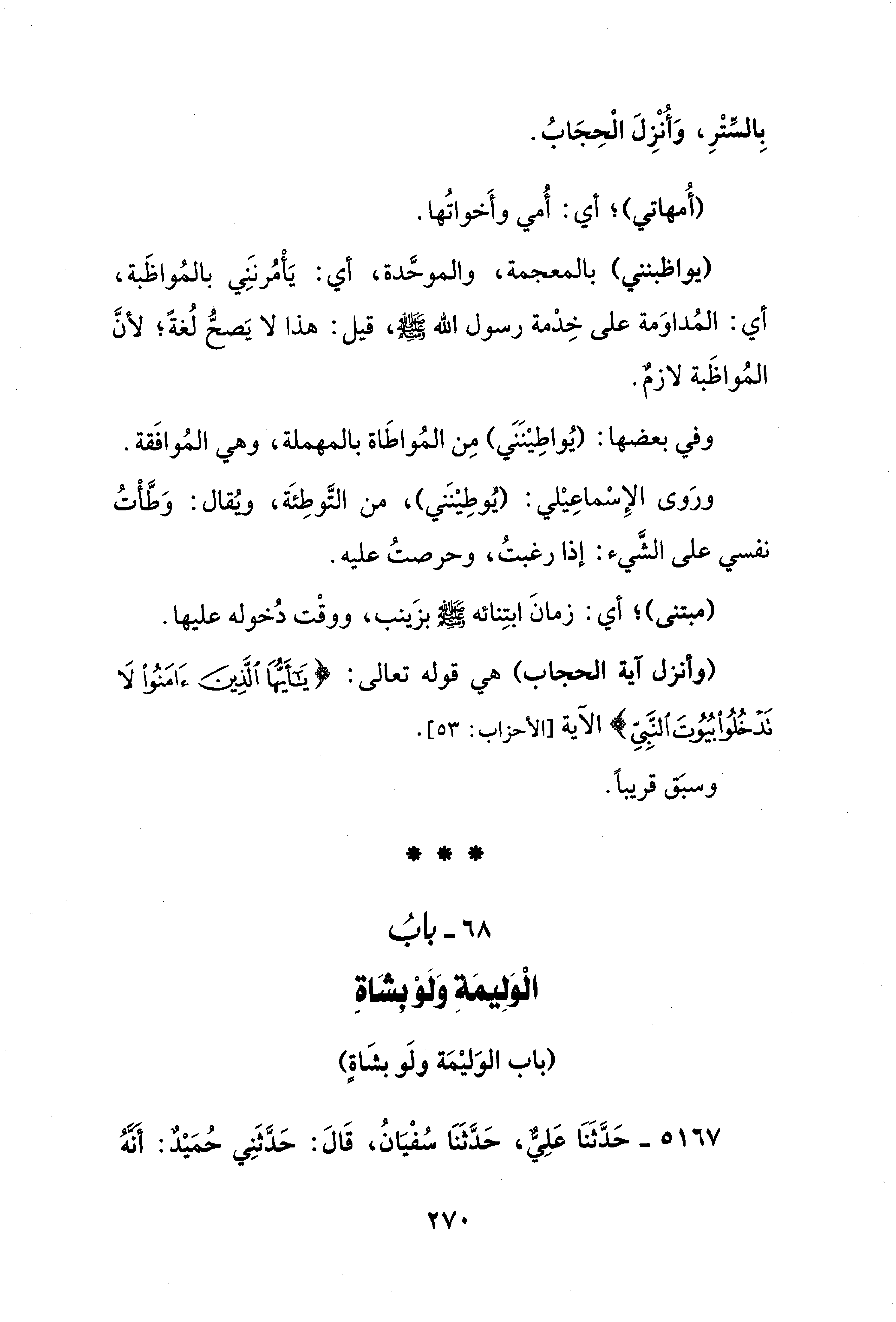 بِالسِّتْرِ، وَأُنْزِلَ الْحِجَابُ.