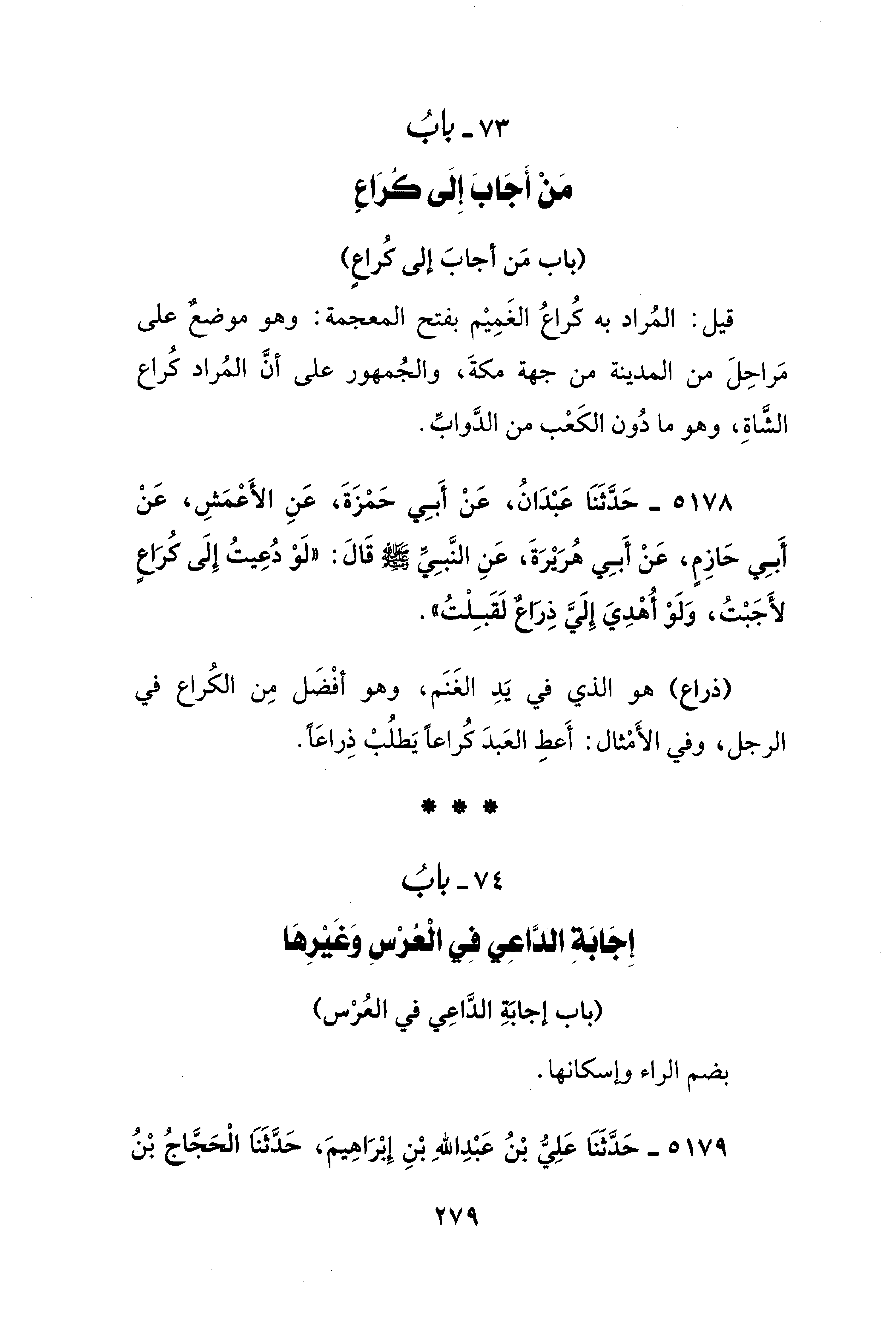 73 - بابُ مَنْ أَجَابَ إِلَى كُرَاعٍ