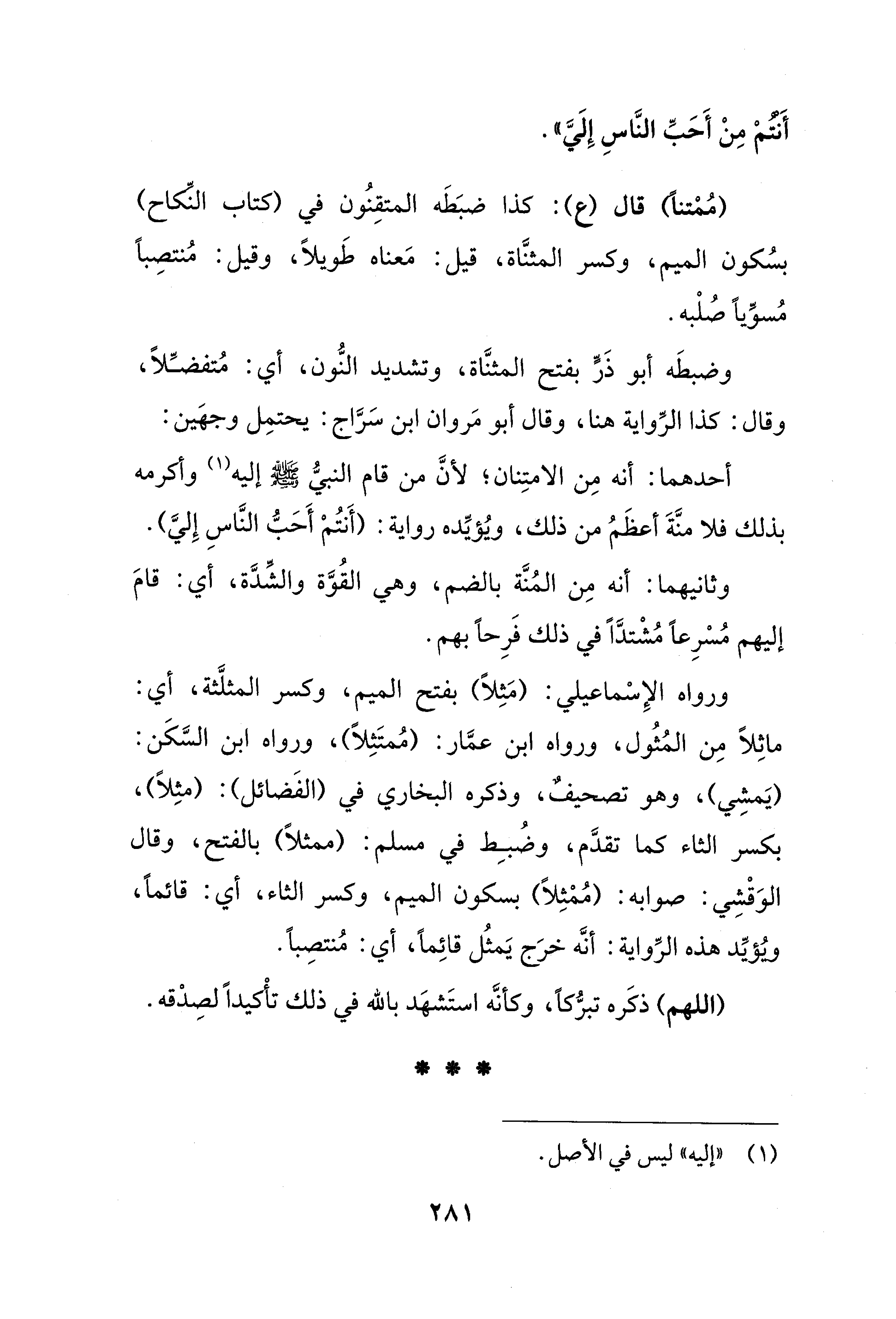 أَنتمْ مِنْ أَحَبِّ النَّاسِ إِلَيَّ".